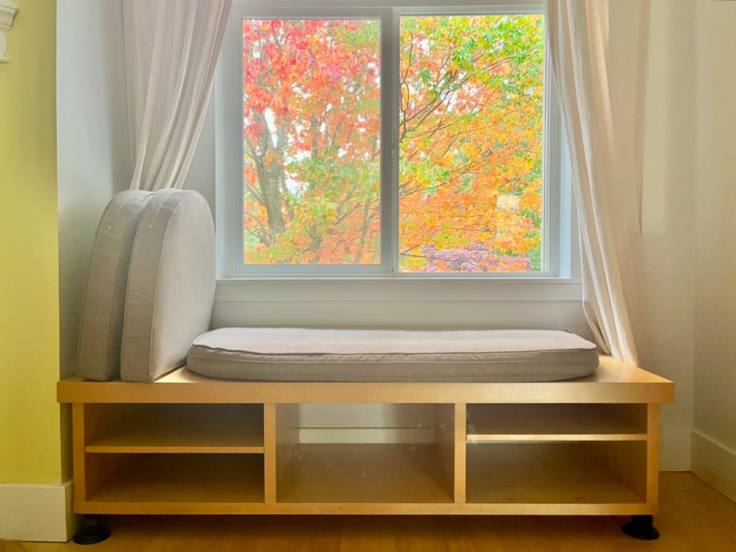 Comes with cushions if needed (removable covers for easy cleaning) - perfect for a book nook or window seat.