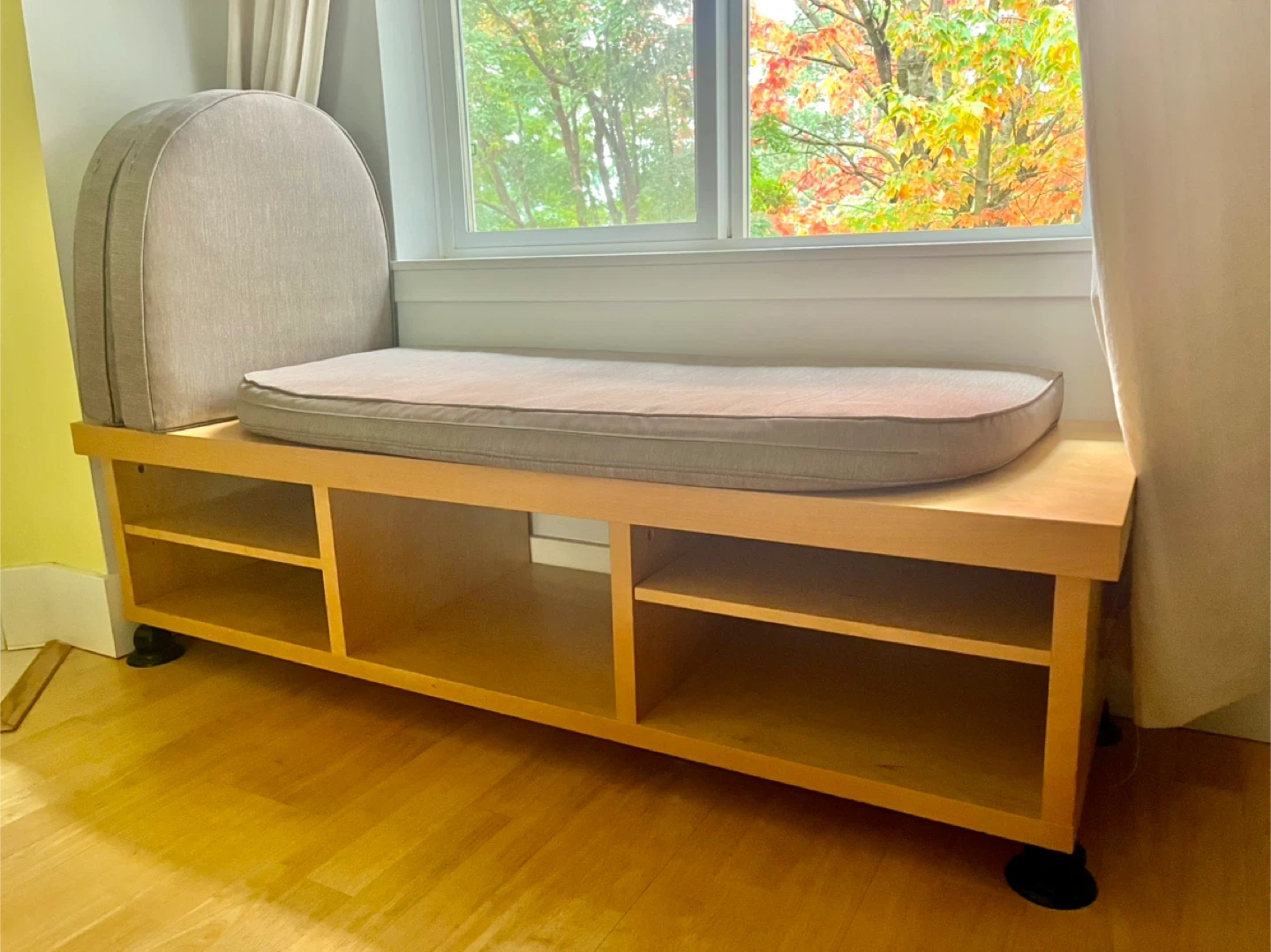 Comes with cushions if needed (removable covers for easy cleaning) - perfect for a book nook or window seat.