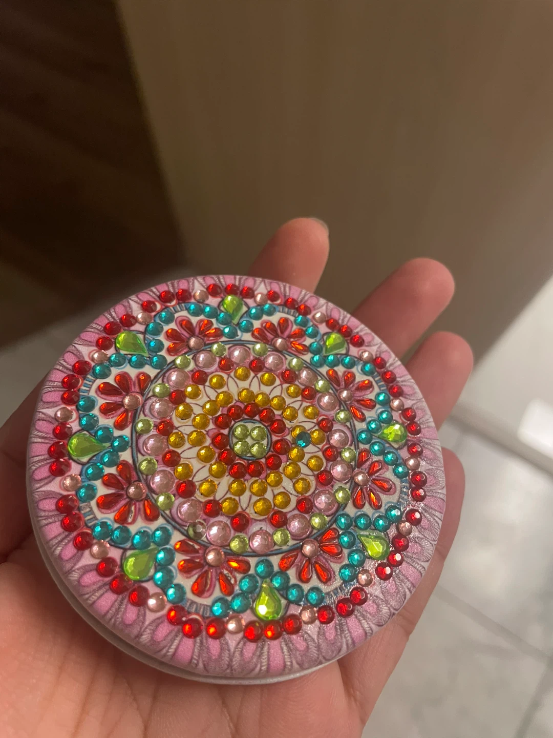 Selling a cute compact mirror with a colourful handmade jewelled design! It's new and perfect for on-the-go touch-ups