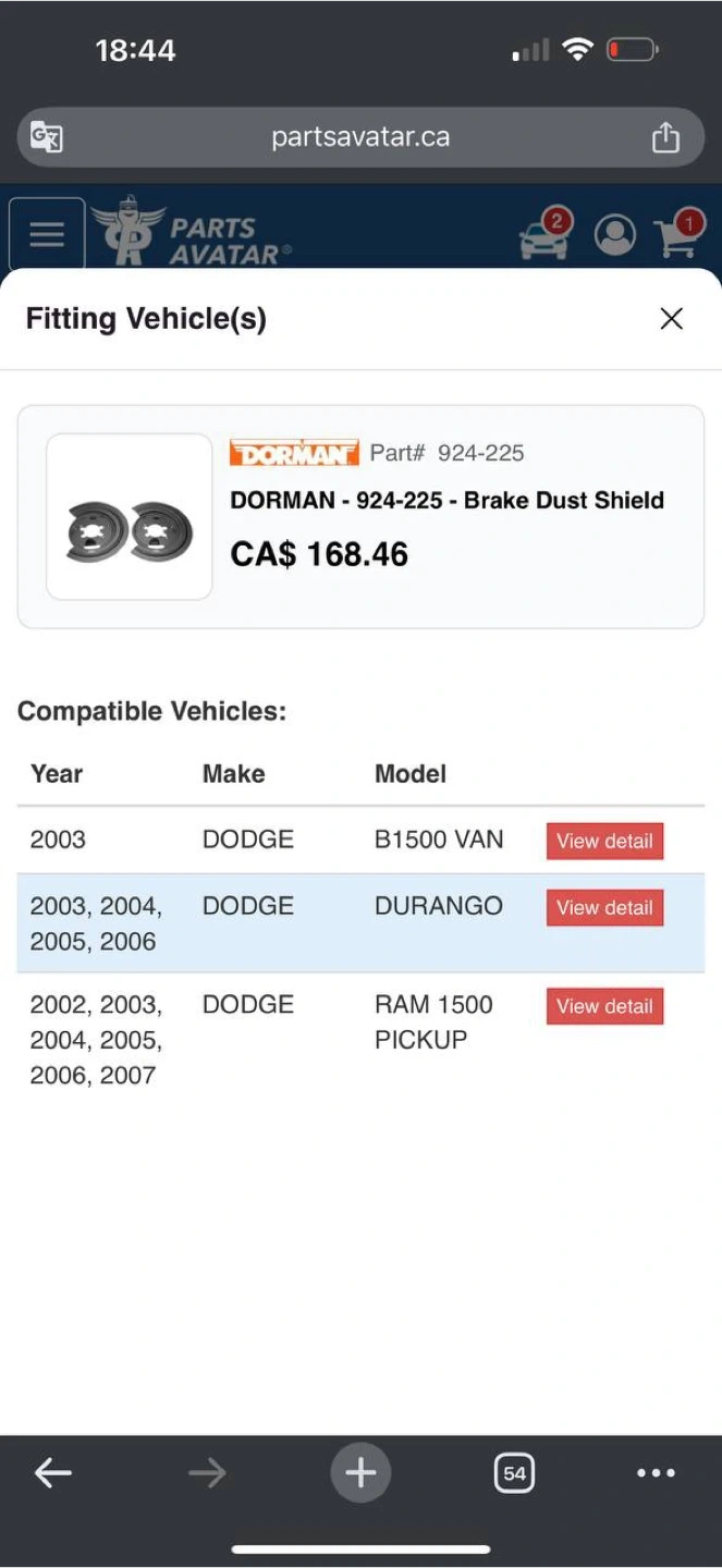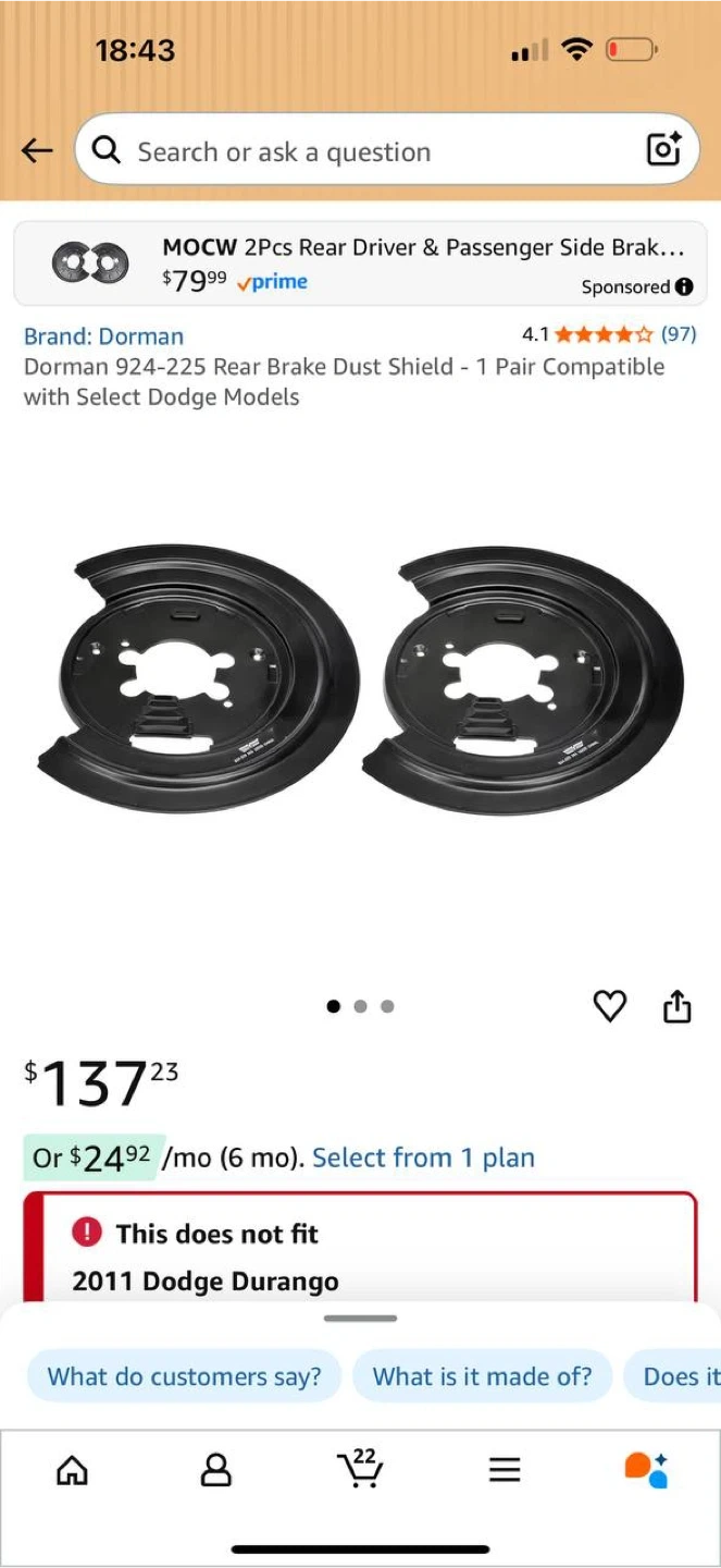 Dorman 924-225 Rear Brake Dust Shield Pair for DodgeDurango/ Ram