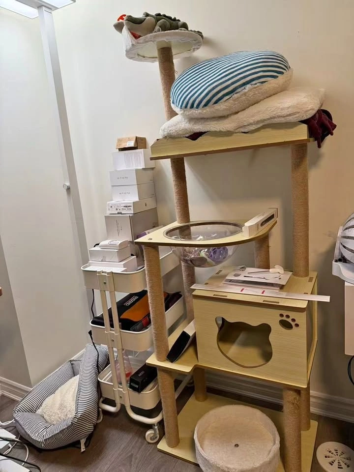 This is a sturdy cat tower, perfect for your feline friends to climb, scratch, and relax. It stands at 170 cm tall, offering plenty of vertical space. Features multiple platforms and scratching posts.