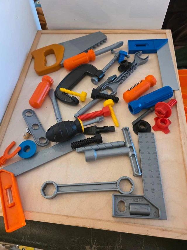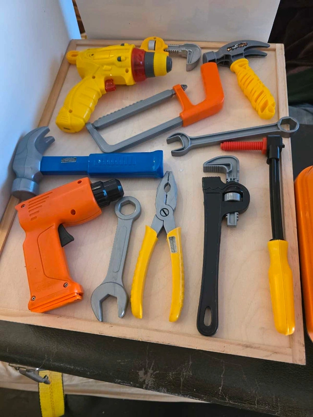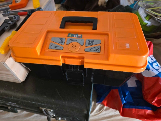 59This is a Talking Toolbox, perfect for little blders! The toolbox comes with a variety of tools and makes fun sounds when you press the buttons. It's in great condition, ready for a new home where it can spark creativity and fun. It's hard to part with this gem, but alas, it's time for someone else to enjoy it. If the ad's up, it's available!