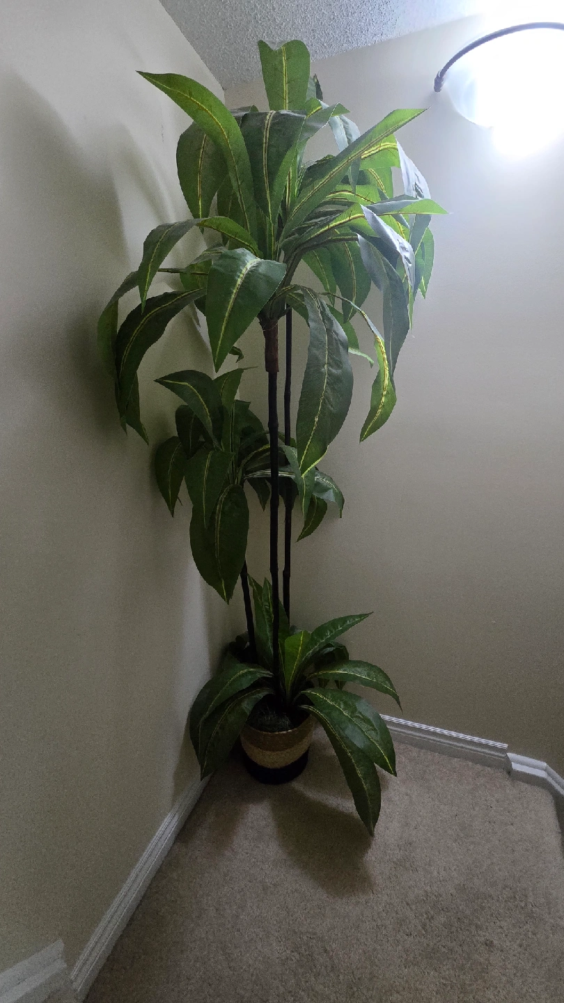 Looking to add a touch of greenery to your home? This tall artificial plant is in great shape and ready to brighten up any corner! It comes in a pot, so it's easy to move and place wherever you like 7' tall
