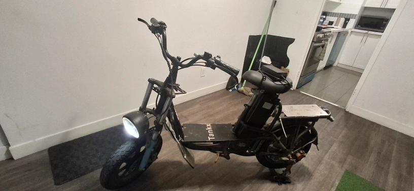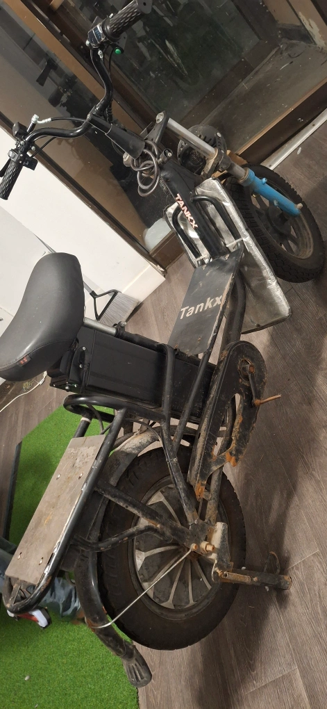 Immediate Selling a Tankx electric scooter. It has a seat and appears to be in used condition. Please see photos for details! 30ah battery must go as it is.... only 400$ slightly negotiable