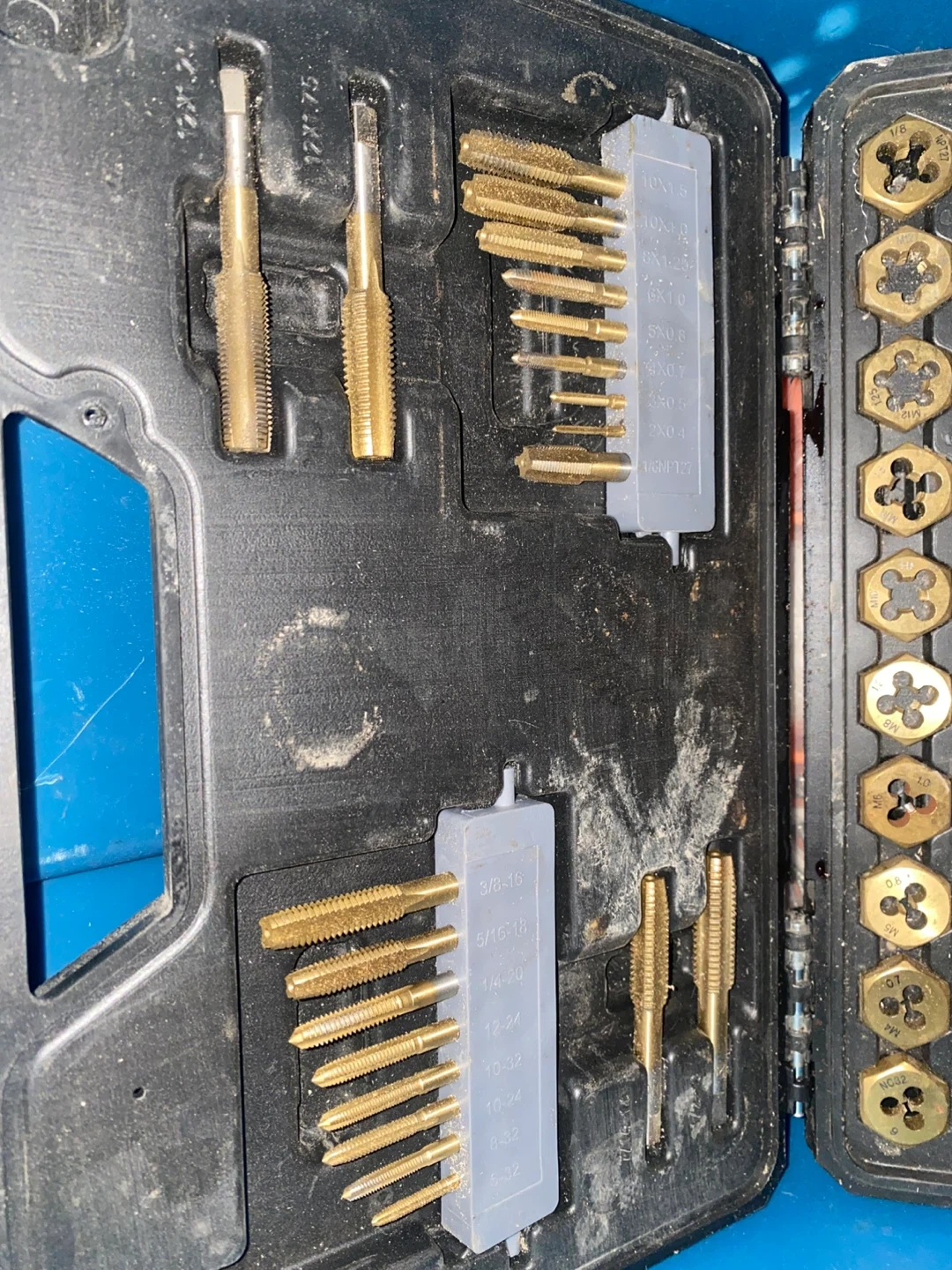 10Selling a used tap and die set. It appears to be a complete set with a variety of sizes. It's in used condition, but still has plenty of life left for your projects