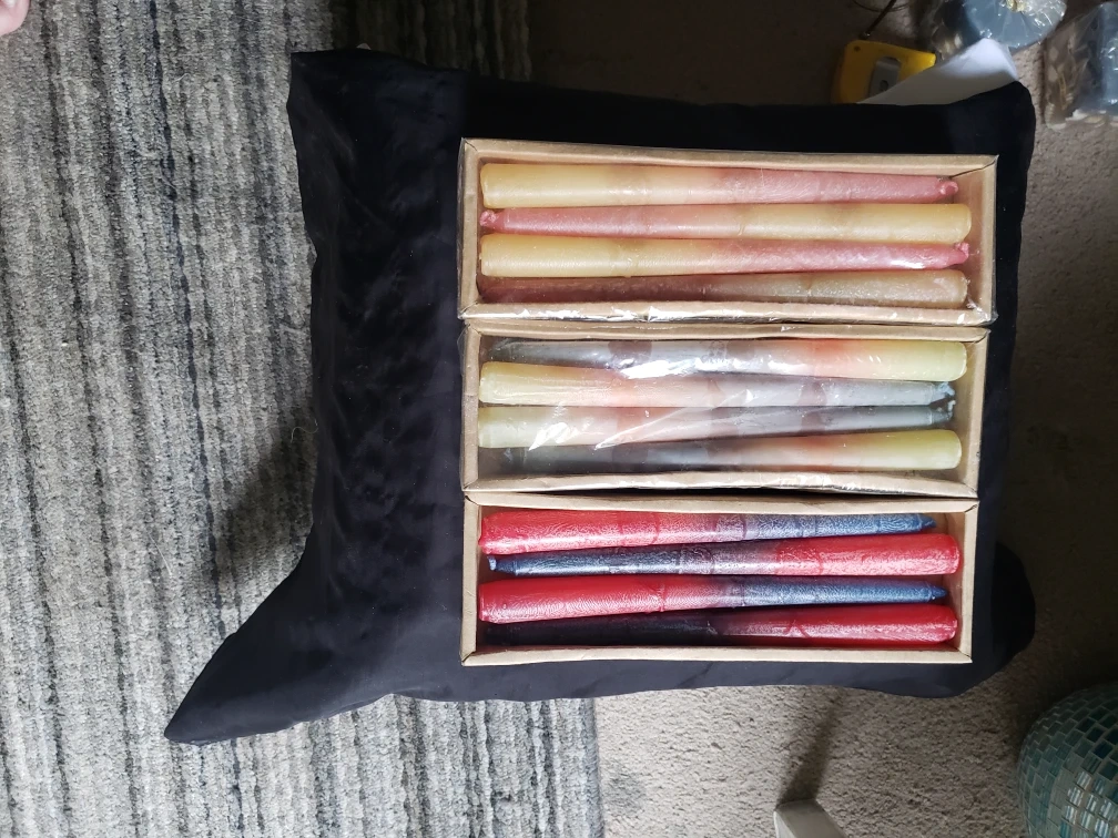 82Selling a set of ear candles in colours: pink, grey, blue and red. They come in their original packaging. Perfect for relaxation.