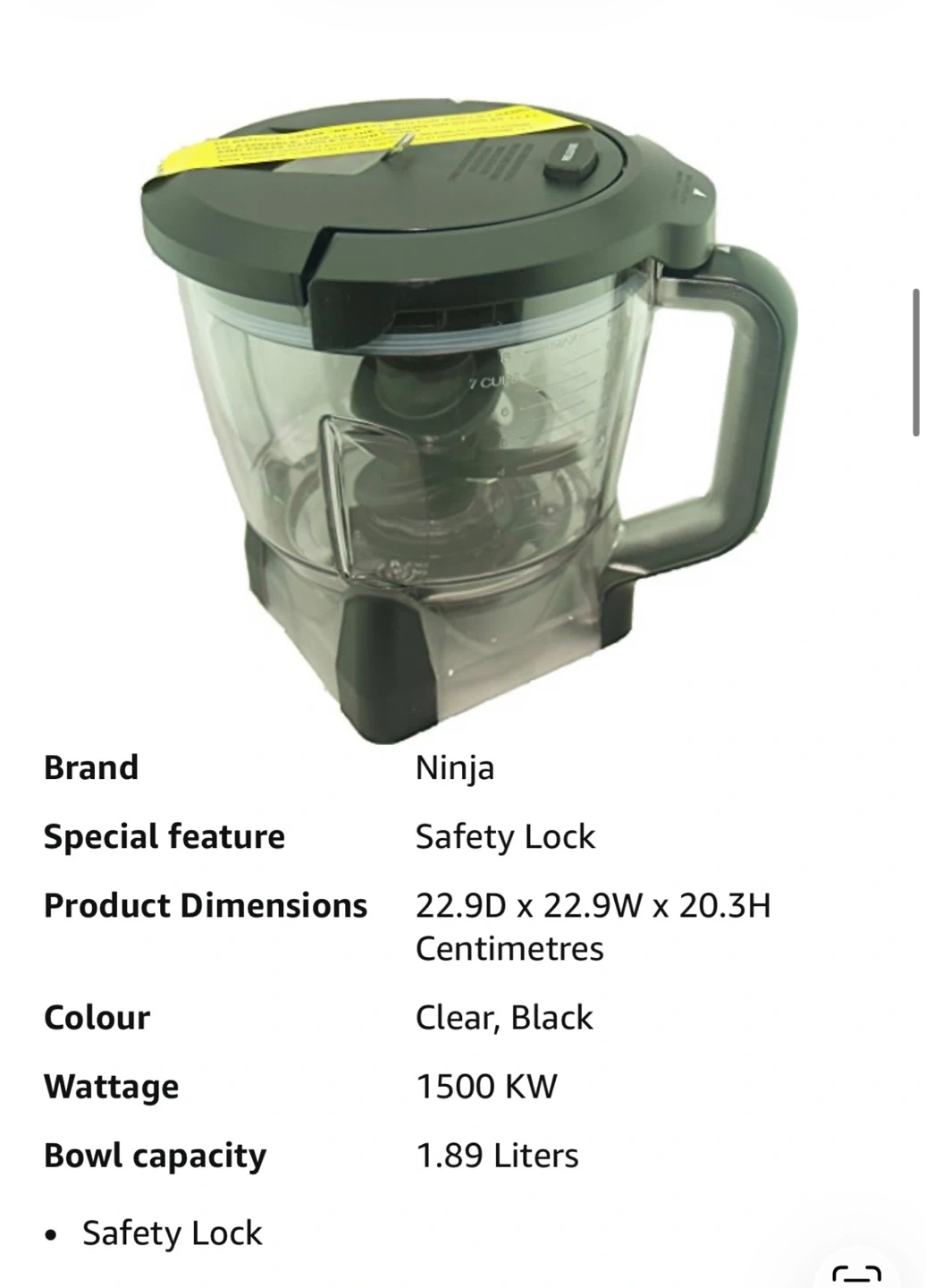 Buy & SellNinja Food ProcessorNinja Food Processor$65This Ninja food processor comes in clear and black. It features a safety lock and has a 1500 KW wattage. The bowl capacity is 1.89 liters.ConditionNewBrandNinjaWHERE TO MEETCheck LocationView MapSELLERverifiedSabaAurora GO924 reviews0 chats·0 favorites·3 viewsSEND CHAT TO SELLERHi Saba! I’m interested in your listing.Hi Saba! I’m interested in your listing.Get the Karrot app to chatSign In to chat