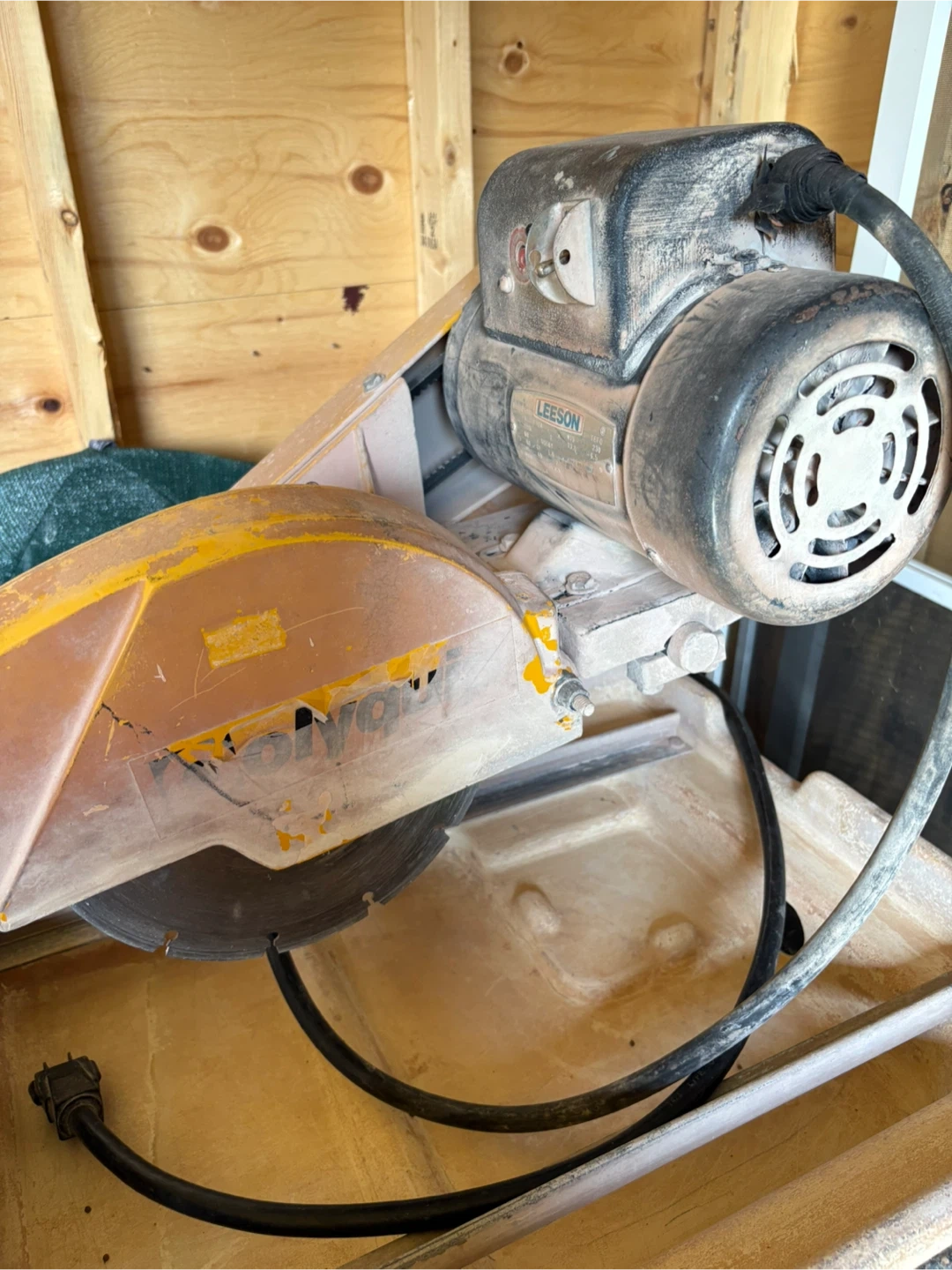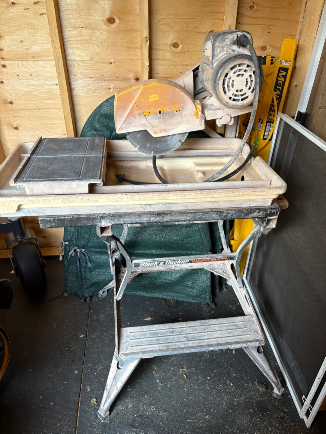 Selling a tile saw. It's showing some signs of use, but it's ready to get the job done! Great for cutting tiles for your next reno project