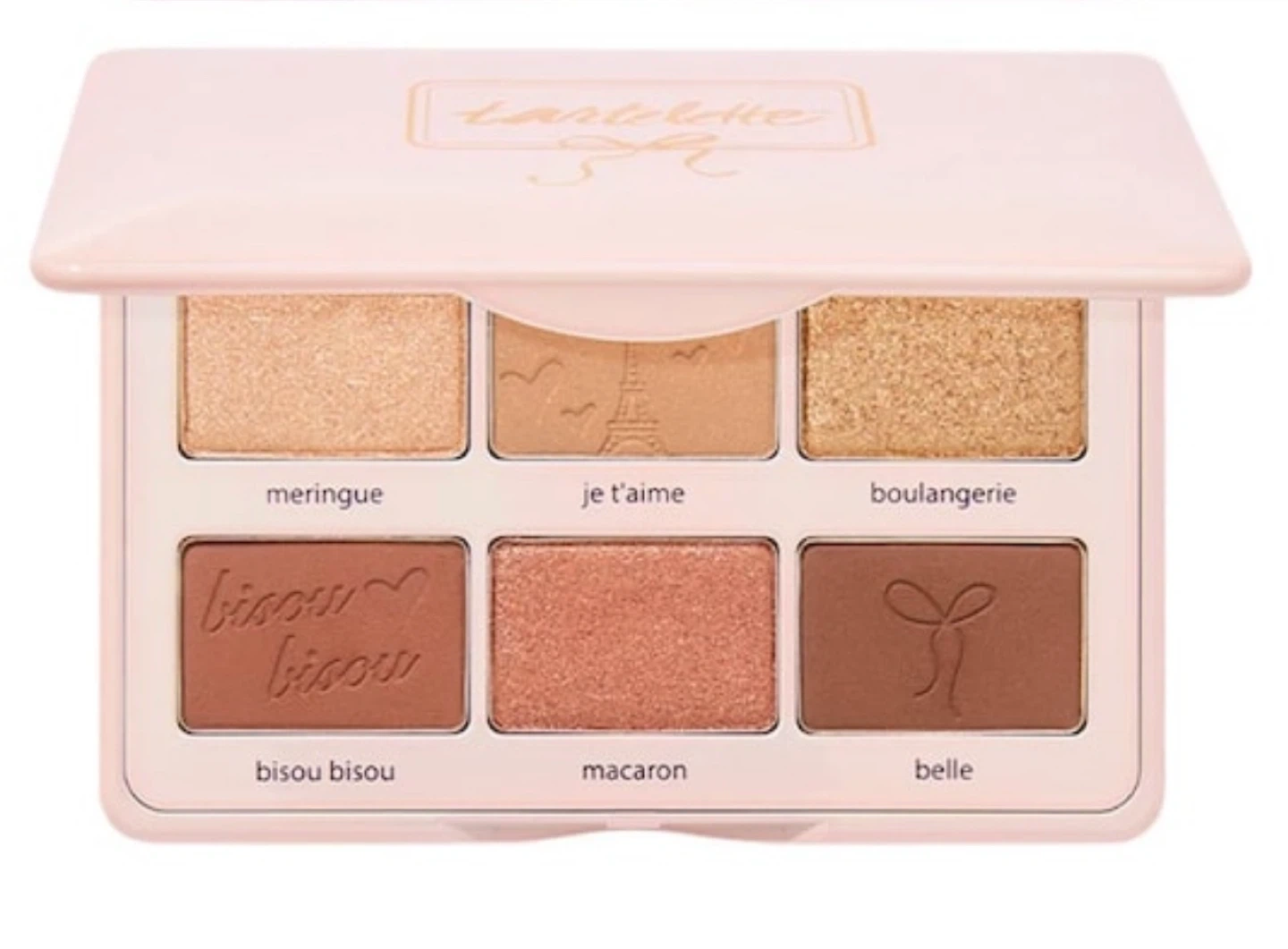 167Selling a Tarte Tartelette eyeshadow palette! The palette features a range of beautiful shades with names like meringue, je t'aime, boulangerie, bisou bisou, macaron, and belle