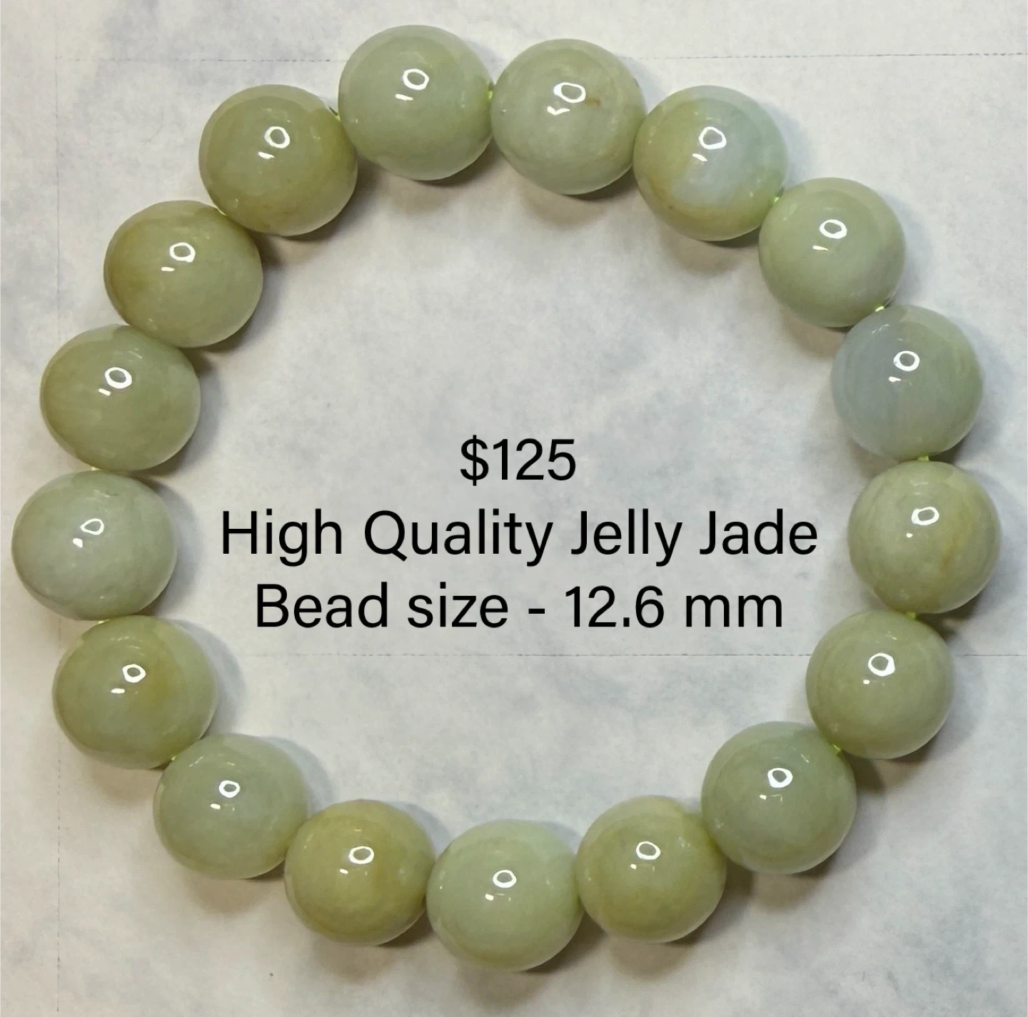 Selling a high-quality jelly authentic jade bracelet. The bead size is 12.7 mm. It's a beautiful piece! With Certificate.