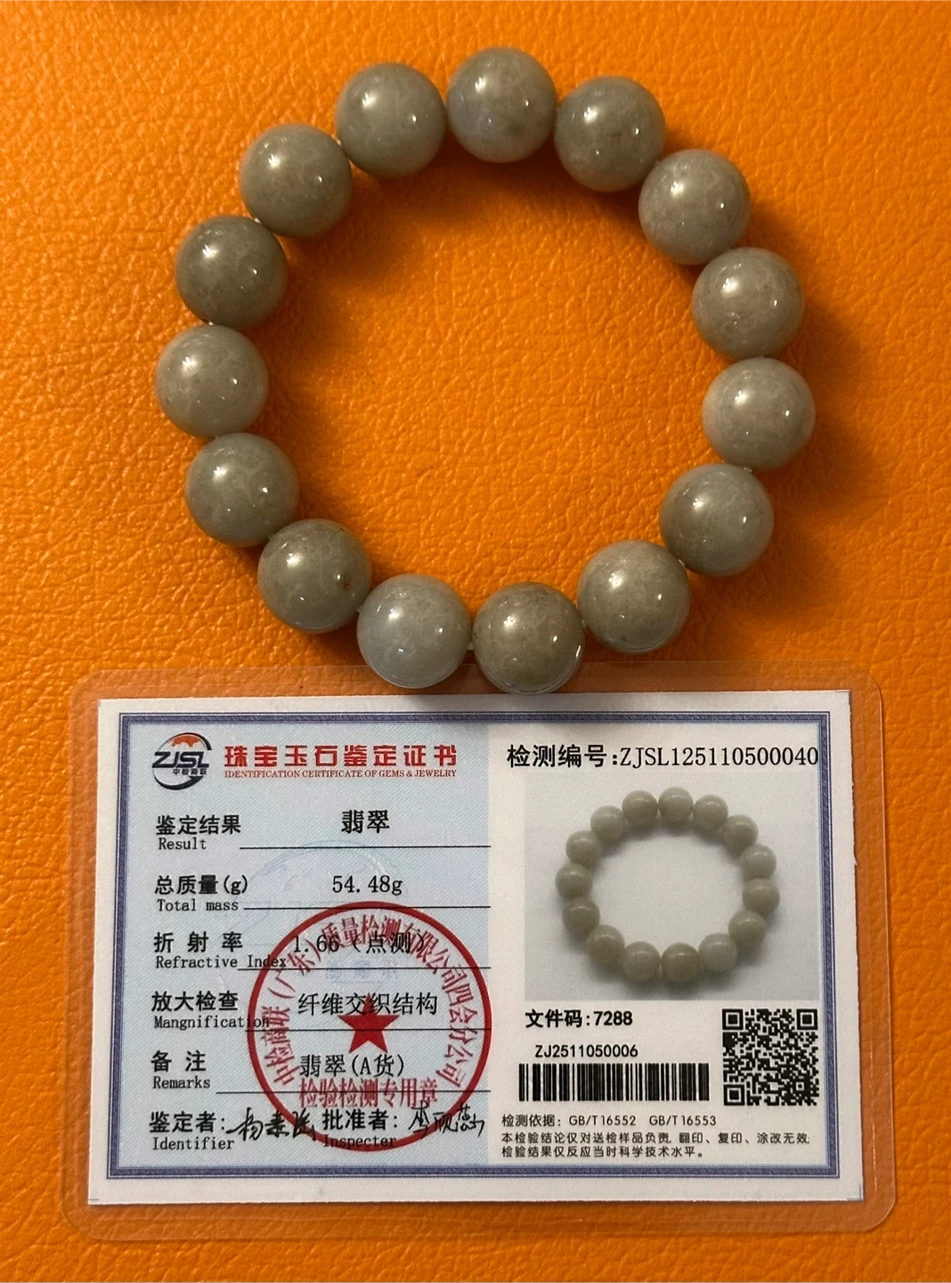 Selling a high-quality jelly authentic jade bracelet. The bead size is 12.7 mm. It's a beautiful piece! With Certificate.
