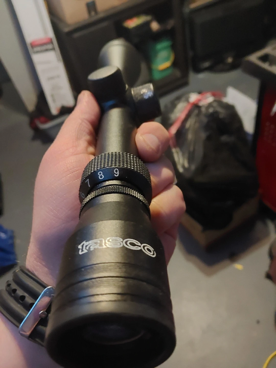 75Selling a Tasco rifle scope in good condition. It looks like it's ready for your next hunting trip or target practice!