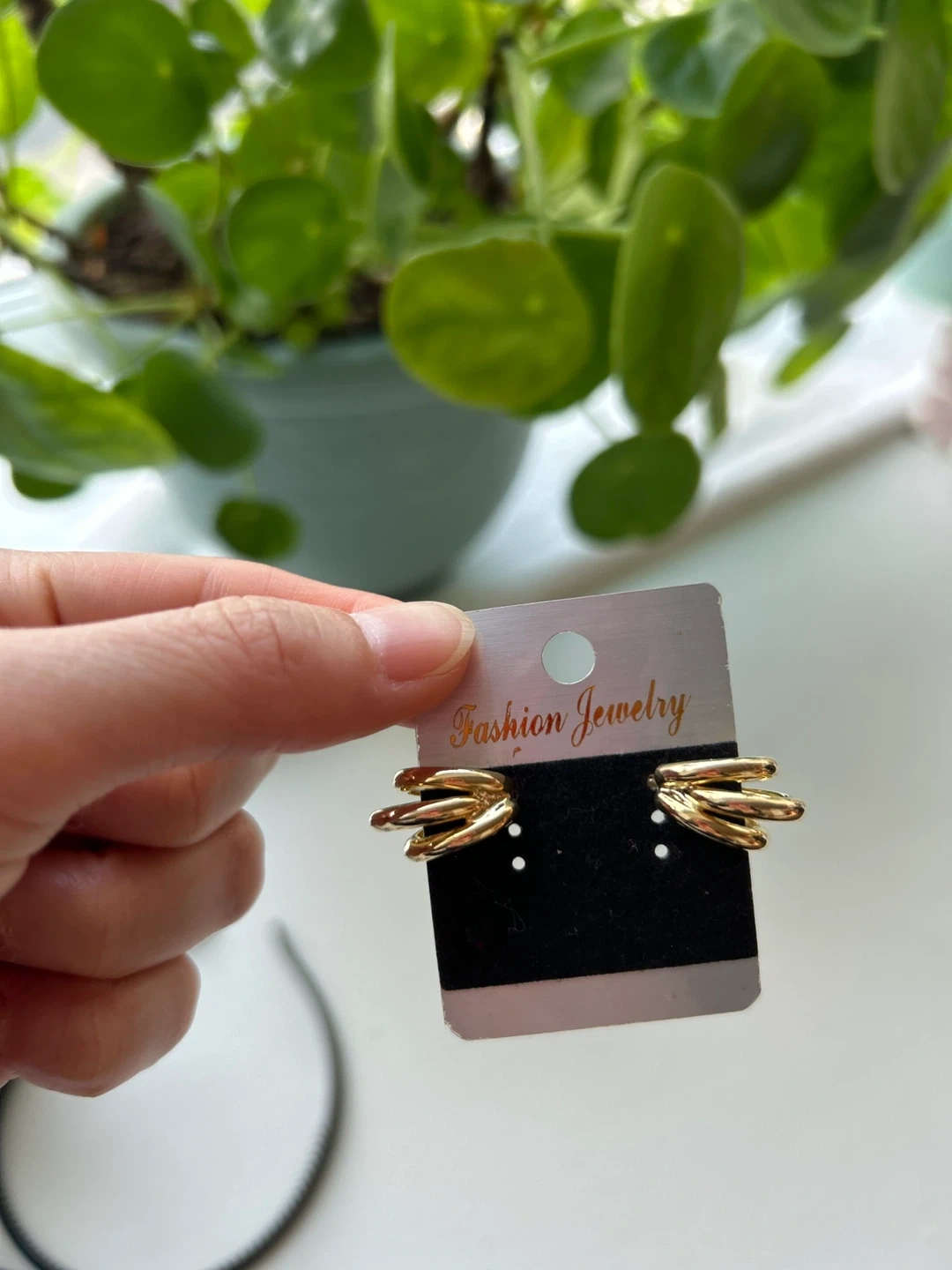 Selling a pair of gold-coloured earrings. They have a unique, multi-bar design. Perfect for adding a touch of elegance to any outfit!