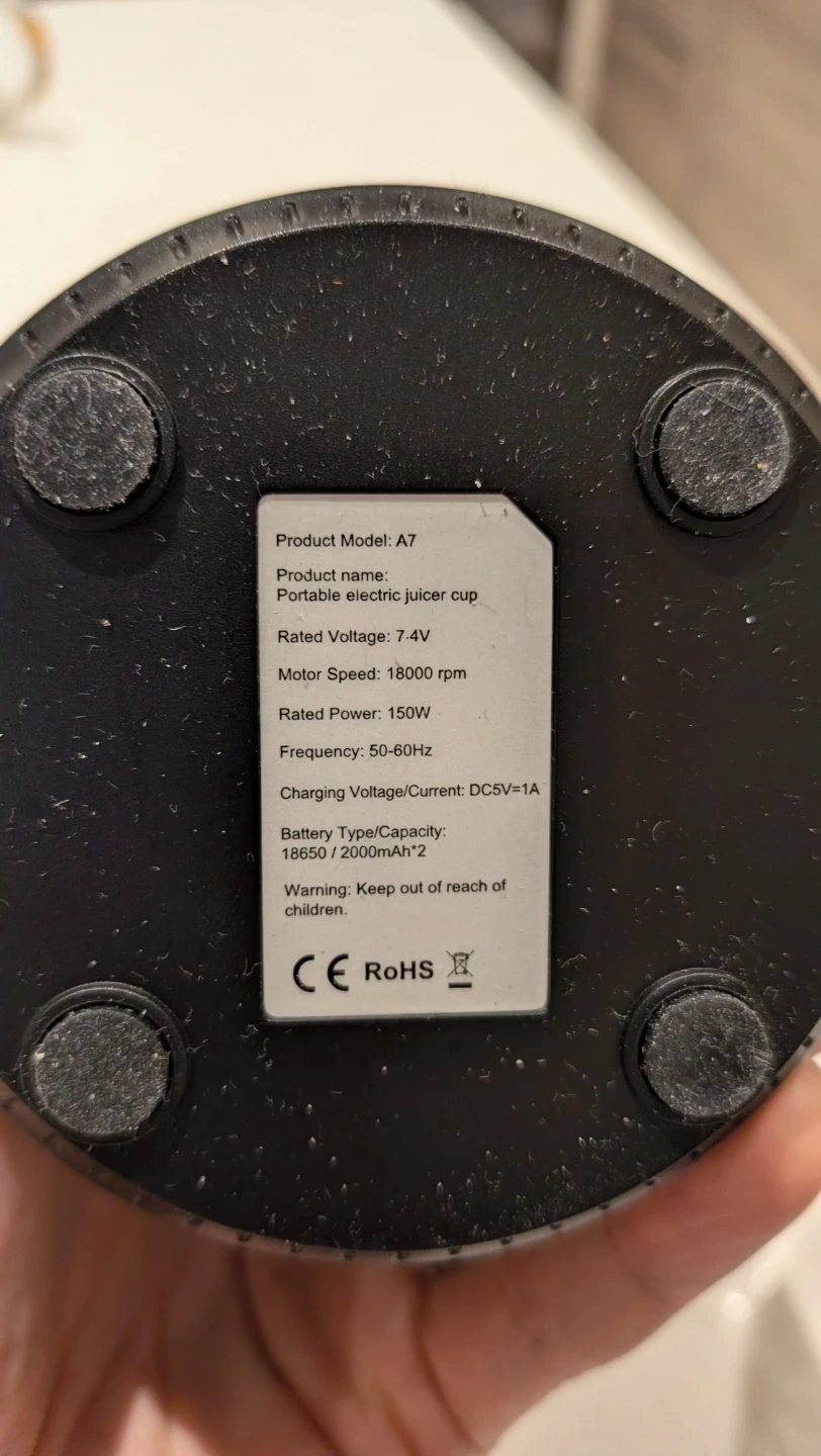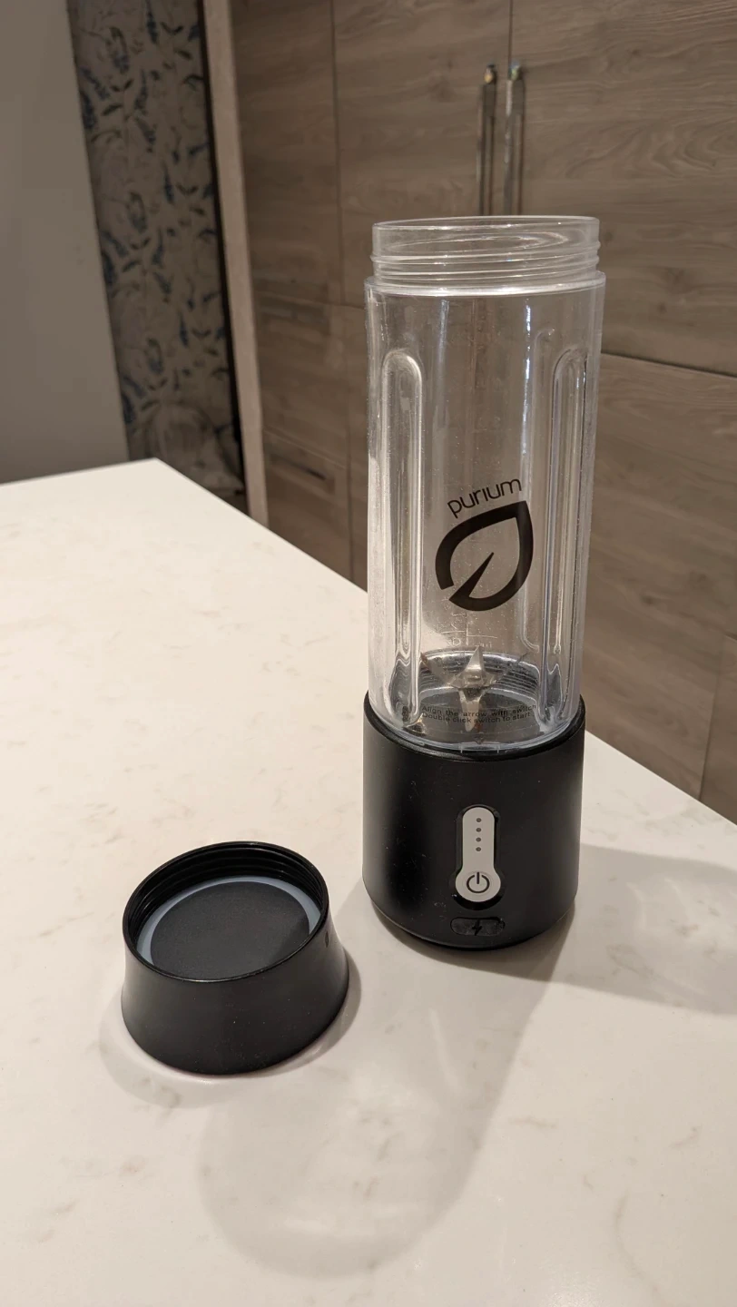 Selling a Purium portable electric juicer cup, model A7. It's in great condition and ready to make your smoothies on the go! The juicer cup is black and features a USB charging port. The rated voltage is 7.4V, and the motor speed is 18000 rpm. It's lightweight and portable, perfect for a healthy lifestyle.