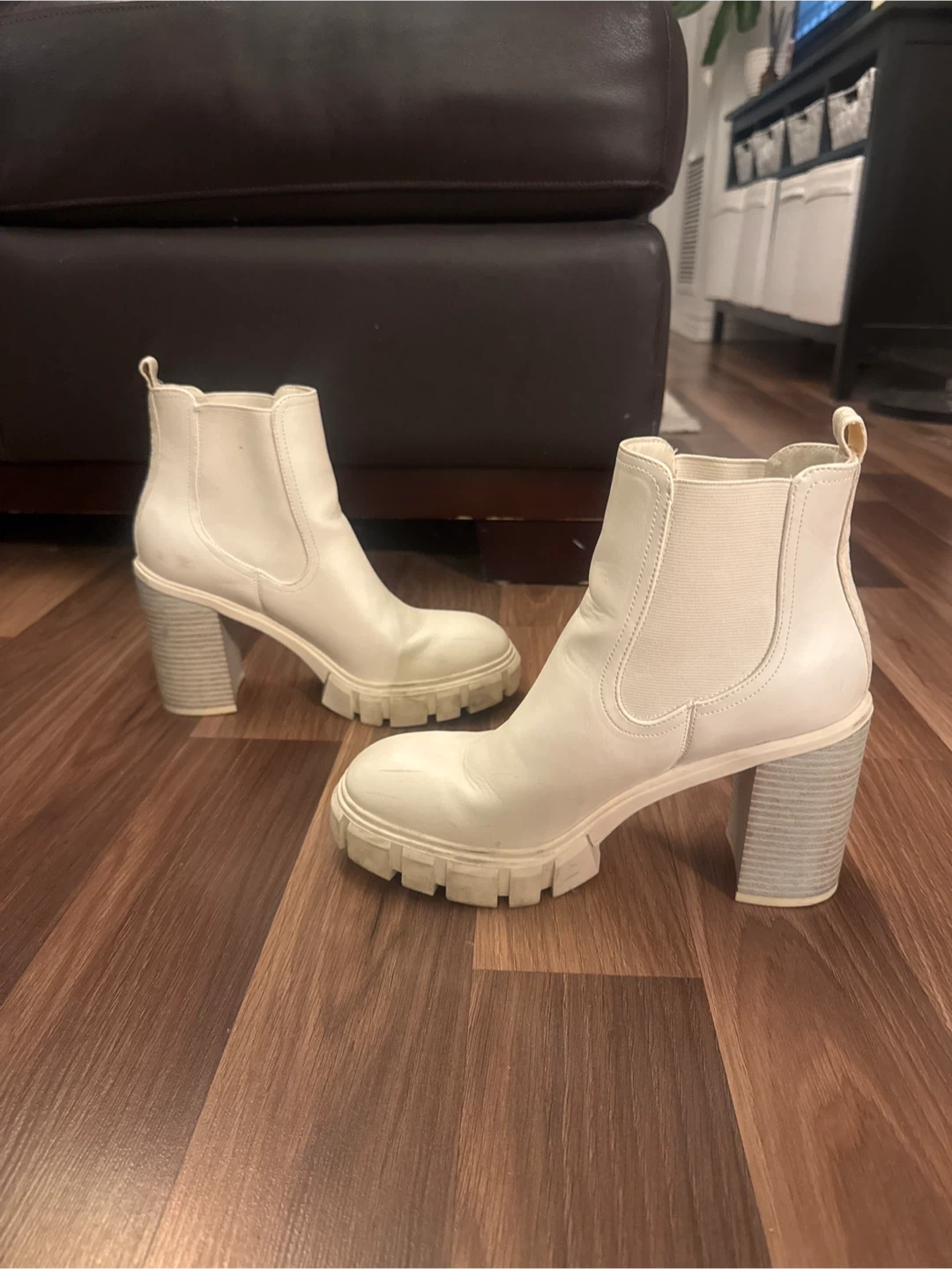 Buy & SellWhite Chunky Heel Chelsea Boots size 8White Chunky Heel Chelsea Boots size 8$9Worn for a season, a few scuffs that could be cleaned offConditionGoodSize8WHERE TO MEETCheck LocationView MapSELLERAndreaWaterfront Communities181 review0 chats·4 favorites·129 viewsSEND CHAT TO SELLERHi Andrea! I’m interested in your listing.Hi Andrea! I’m interested in your listing.Get the Karrot app to chatSign In to chat