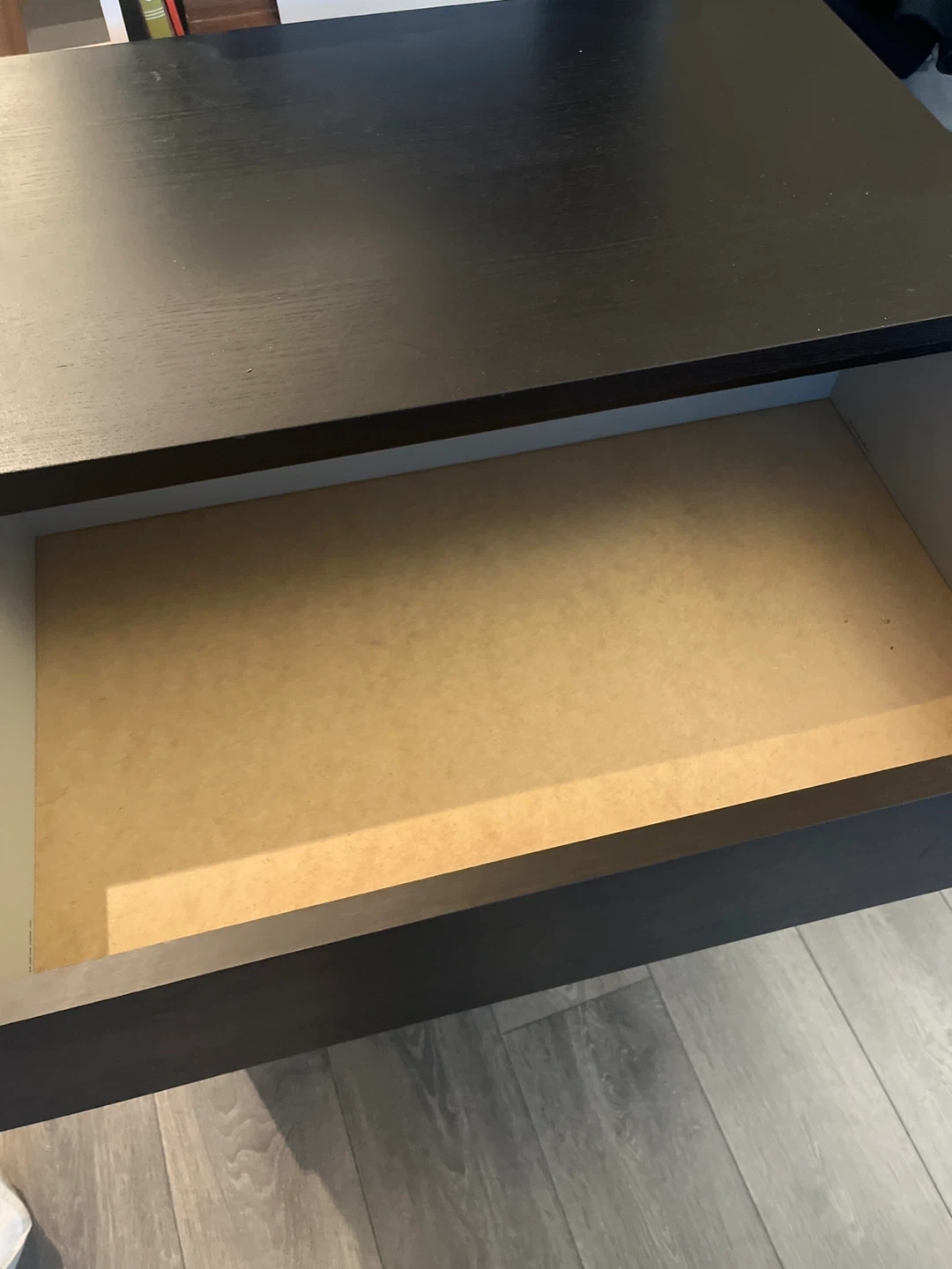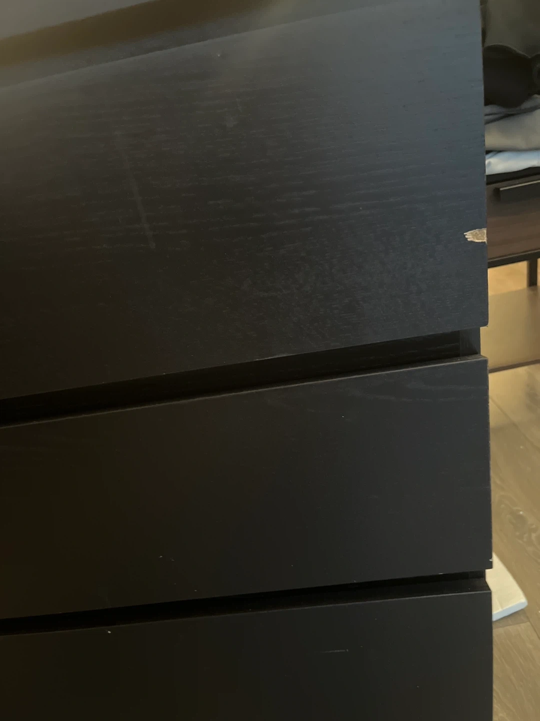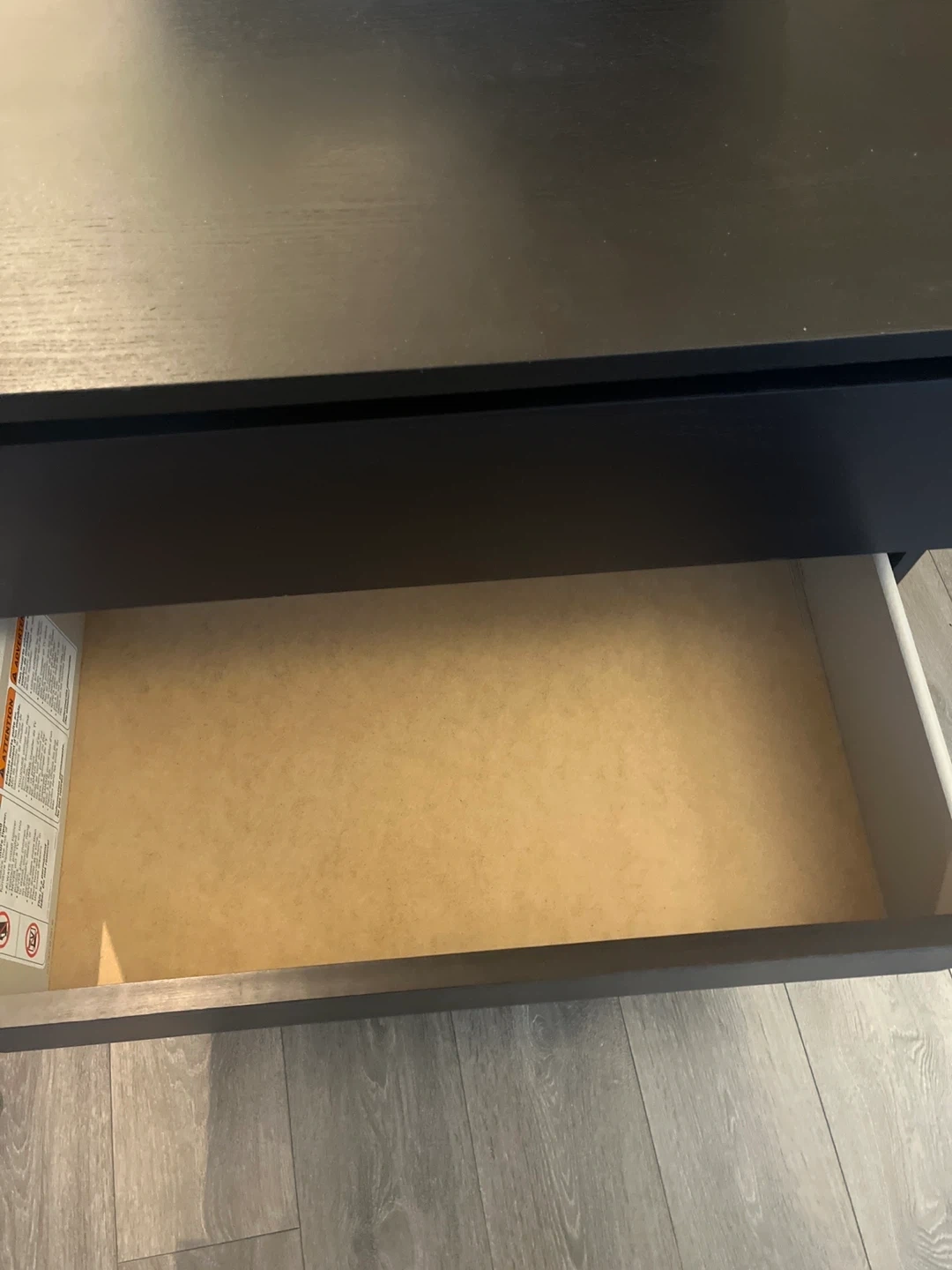 Selling a dark brown IKEA three-drawer dresser. It has a few scratches, as shown in the photos. It's a great piece for extra storage in a bedroom or closet!