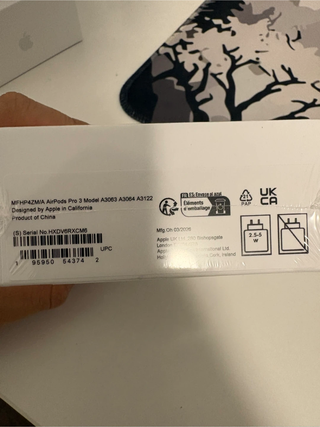 Non opened Apple AirPods Pro (3rd generation) in white. Model A3063.
