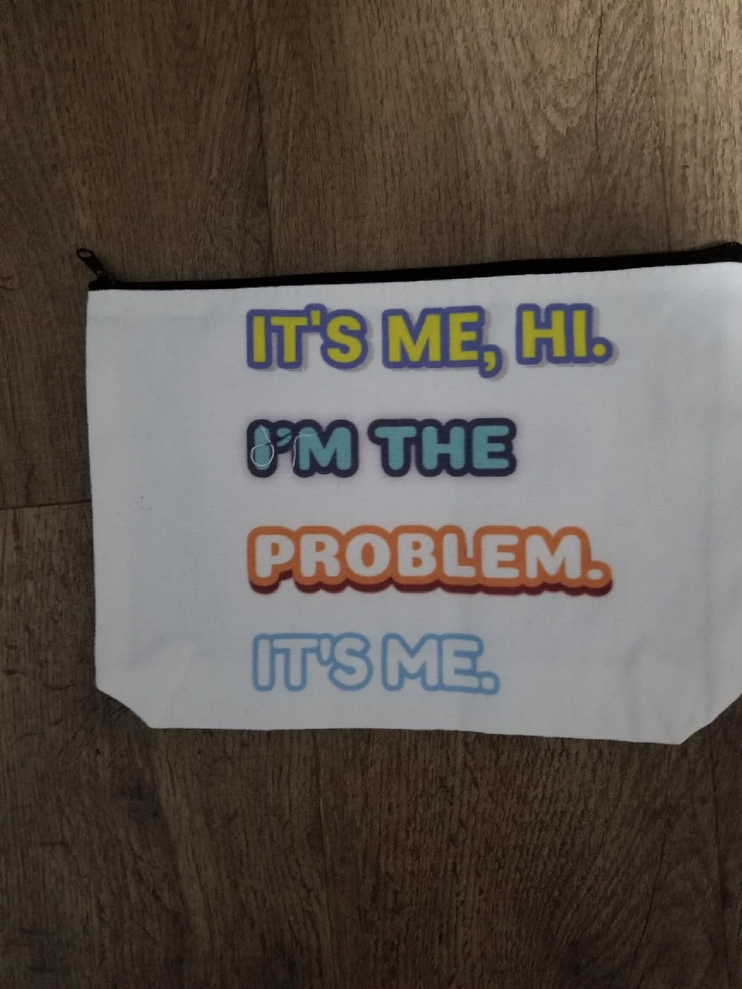 240Selling a cute zipper pouch with the phrase "It's Me, Hi, I'm the Problem. It's Me" printed on it. Perfect for carrying small items! Brand new