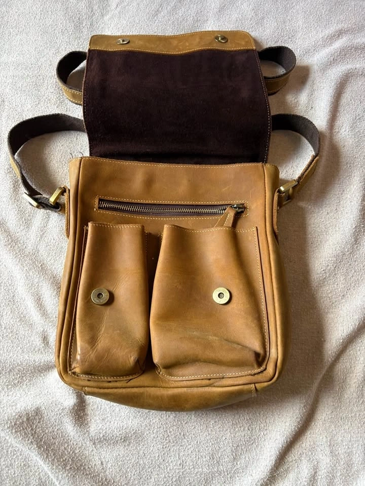 Great condition, real leather satchel with 7 pockets. Size is about 12”x8”. $75 or best offer. Potentially open to trades of any kind!