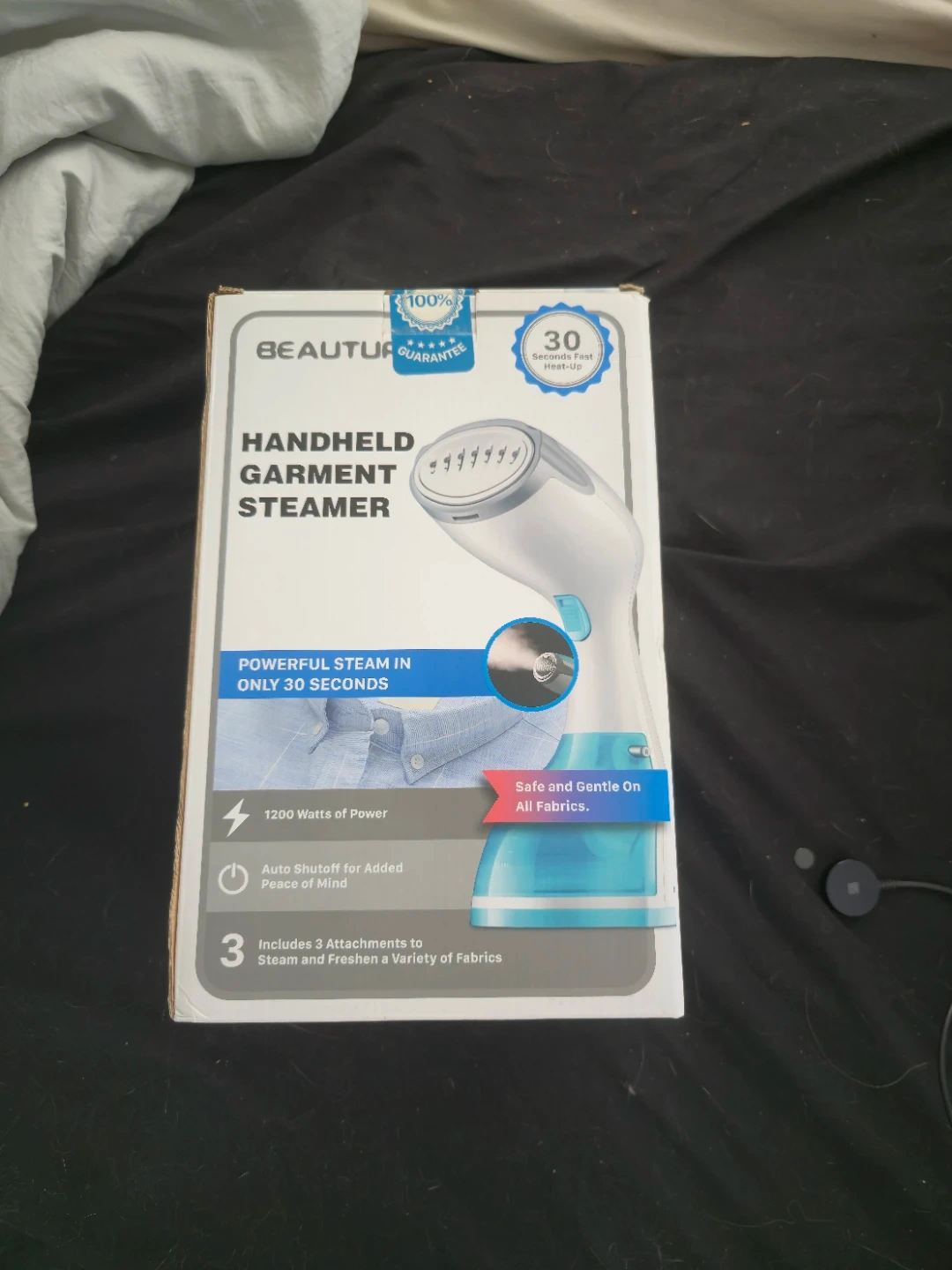 This BEAUTURAL handheld garment steamer is designed for quick and effective wrinkle removal. It heats up in just 30 seconds and has 1200 Watts of power. It includes 3 attachments for steaming and freshening a variety of fabrics.