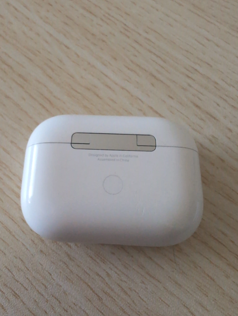 White wireless earbuds with Charging case. Sometimes the charging may not fully charge if you use non Apple chargers. Good for meetings, calls in noisy environment with Active noise cancellation.