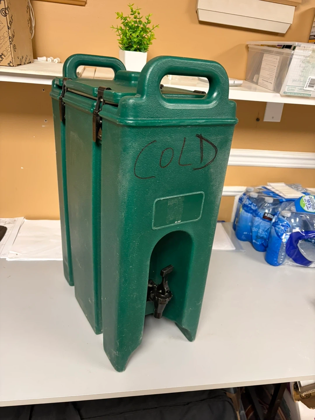 This is a Cambro 5 gallon/ 17 litre beverage dispenser. It's well insulated to keep your beverages had a cold for hours