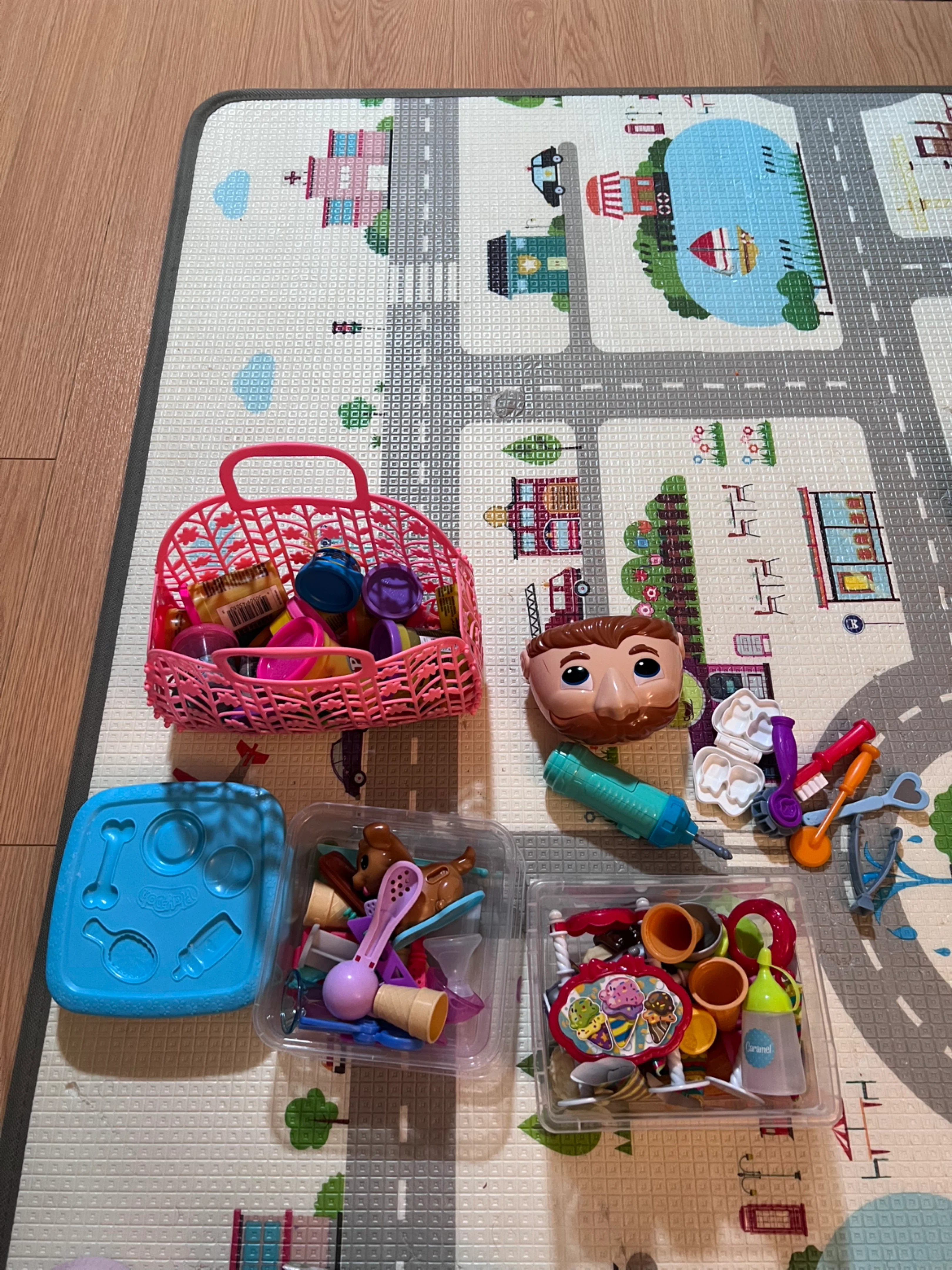 This lot includes a pink LeapFrog mini laptop and a pink Minnie Mouse toy phone. There's also a red Mickey Mouse themed activity toy with tools. These toys are great for early learning and imaginative play! They're all colourful and engaging for young children.