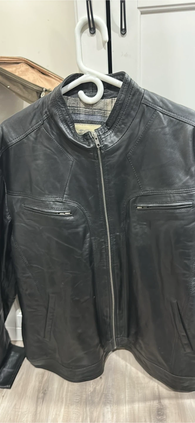 Selling a black leather jacket in brand new condition! Never used I sell jackets and many more available.It's a stylish piece perfect for any wardrobe. Feel free to reach out if you have any questions!