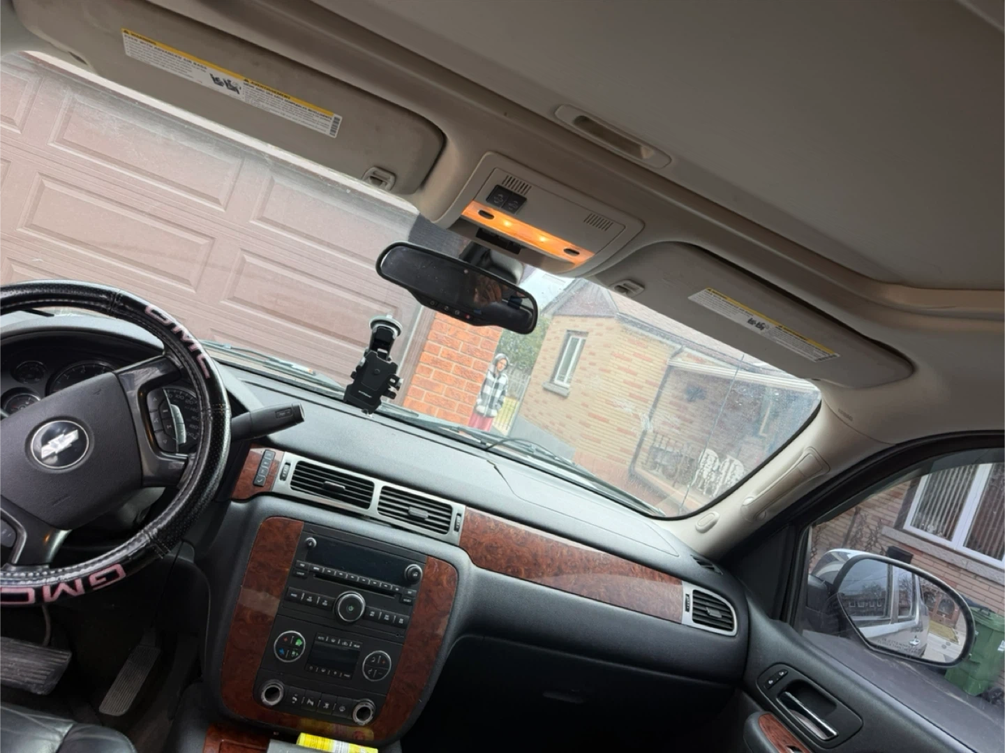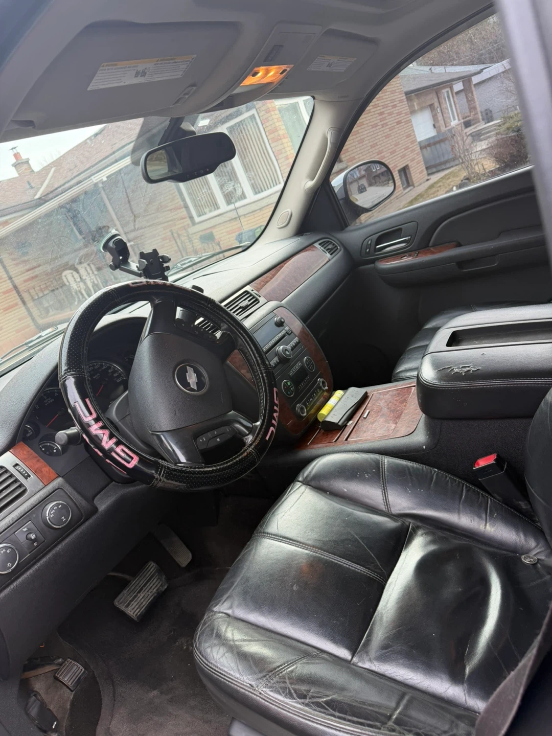 This is a grey Chevrolet Avalanche. It has a dark interior with wood trim accents. The exterior is grey and shows some signs of wear. Engine and transmission is good
