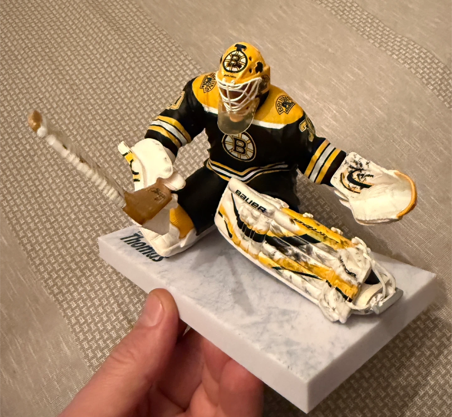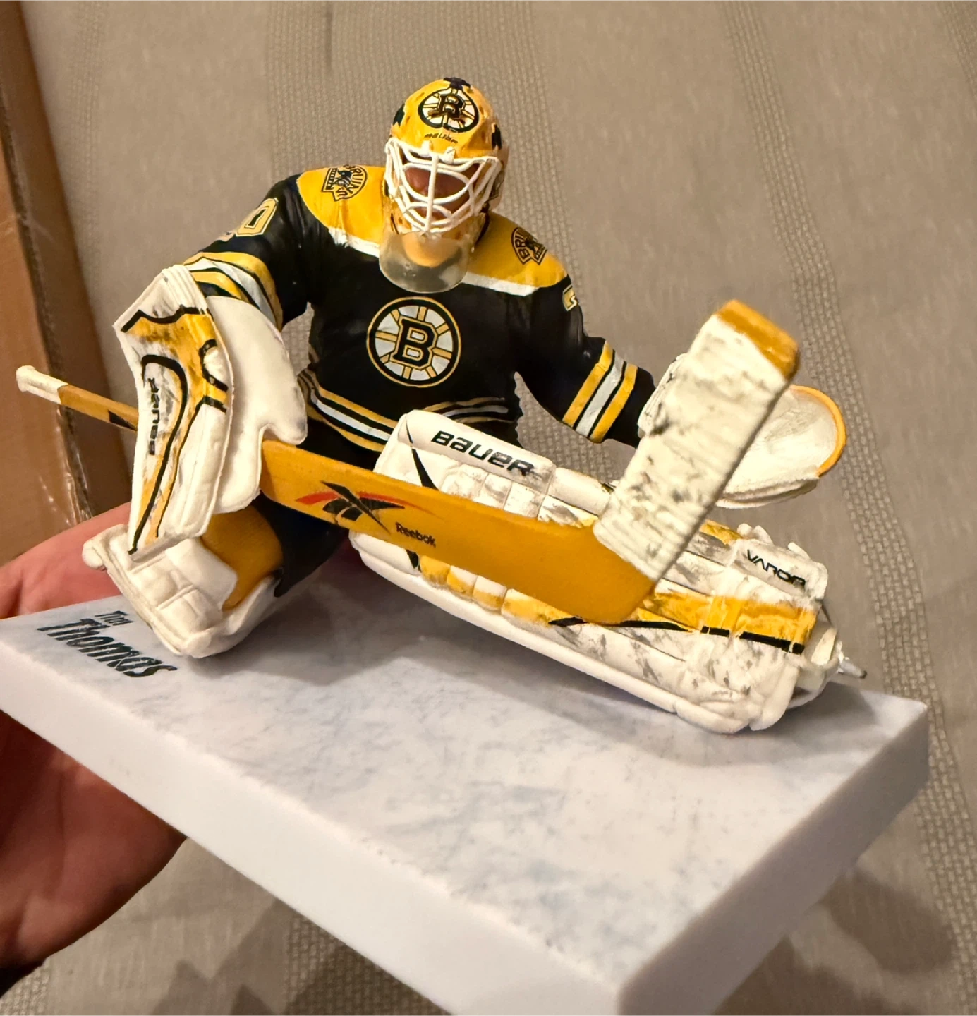 Selling a Tim Thomas Boston Bruins goalie figurine. It features the Bruins logo and Thomas's number 30. A great item for any hockey fan!