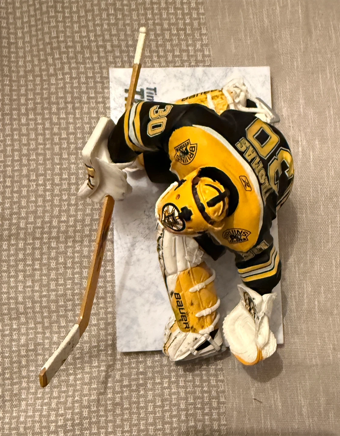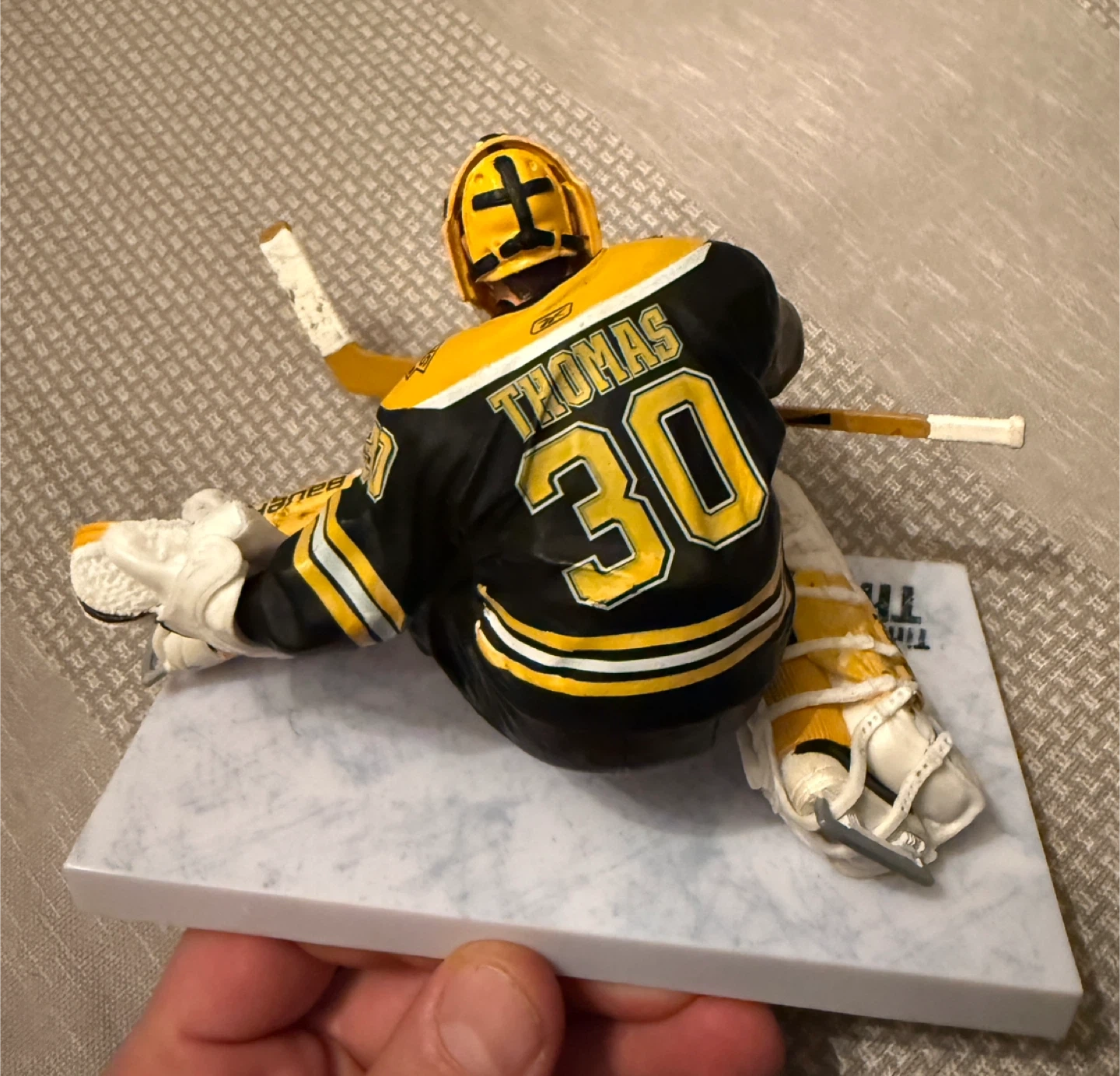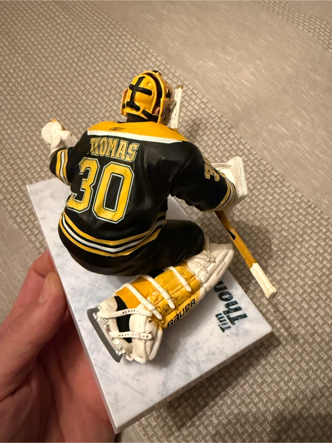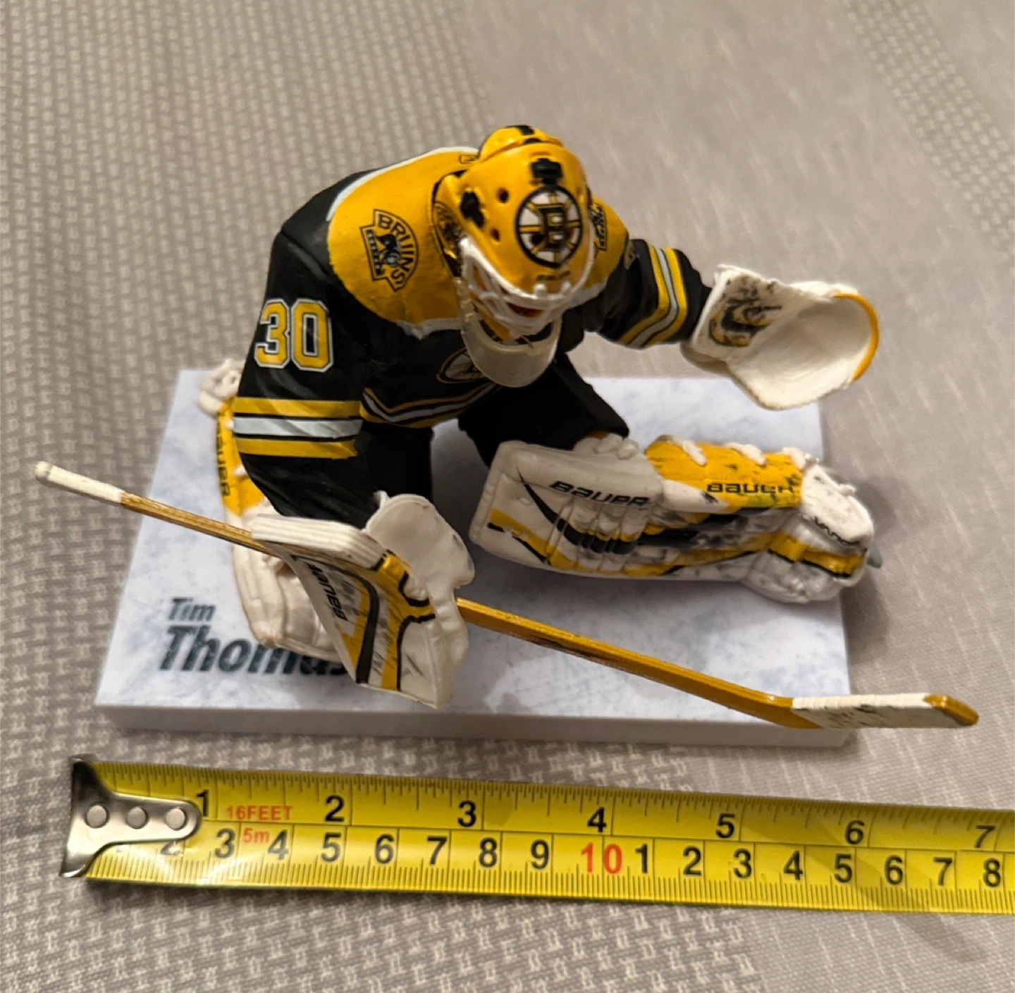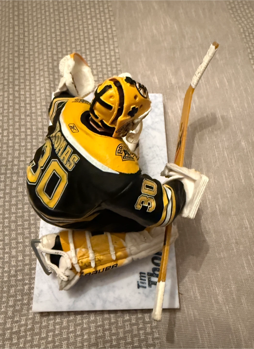 Selling a Tim Thomas Boston Bruins goalie figurine. It features the Bruins logo and Thomas's number 30. A great item for any hockey fan!