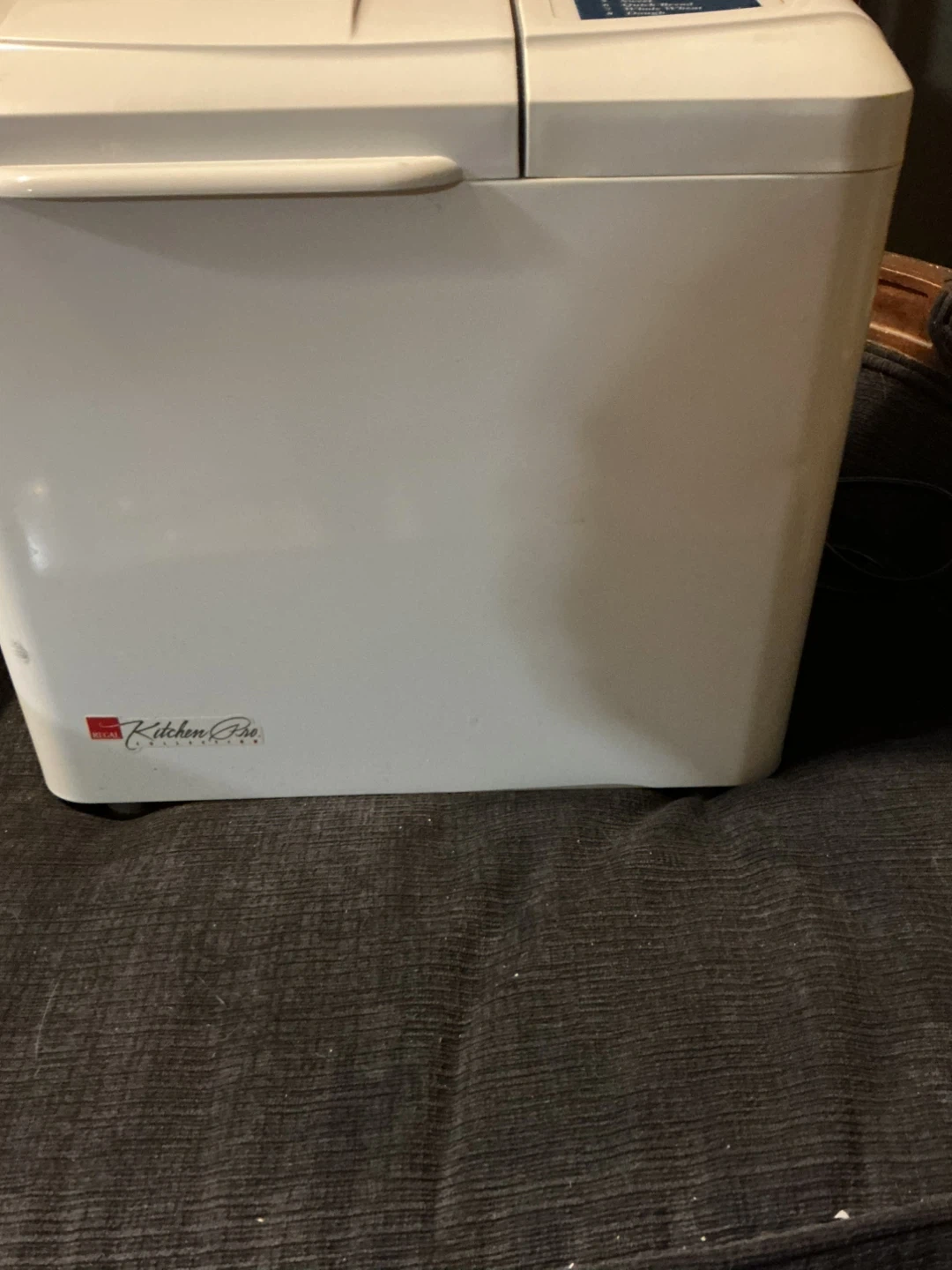 Selling a Kitchen Pro bread maker. It has settings for different types of bread, including large-light, large-dark, regular-light, French, sweet, quick bread, whole wheat, and dough. It also has a timer, knead, rise, bake, and complete indicator