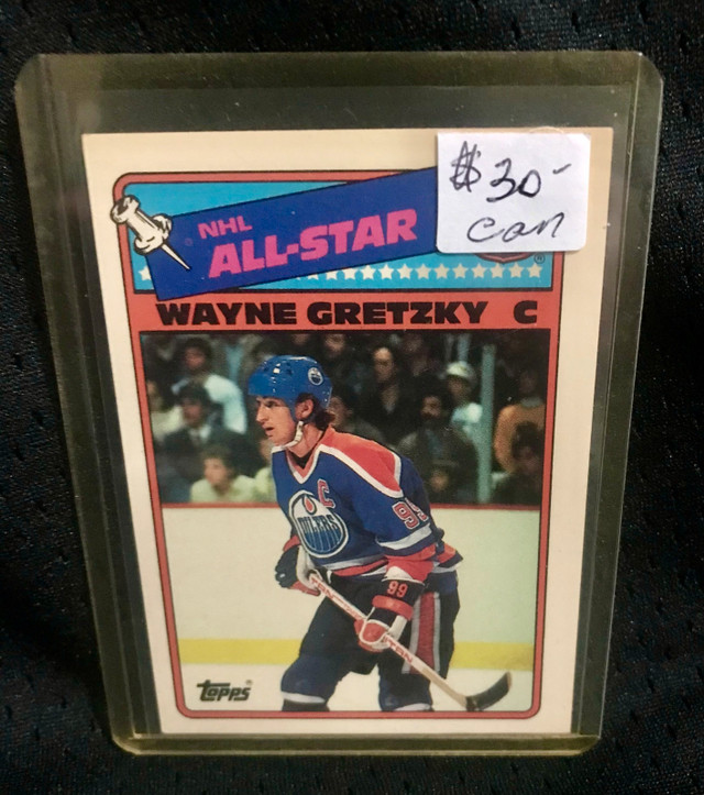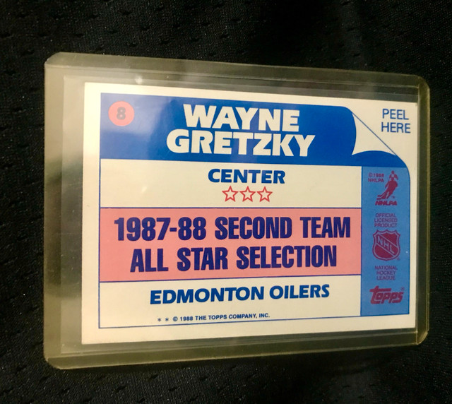 This is a Wayne Gretzky 1988-89 HOF All-Star sticker, Topps card #8, featuring the Edmonton Oilers. This used collectible is in excellent condition, perfect for any hockey or sports memorabilia enthusiast looking to add a vintage piece to their collection!