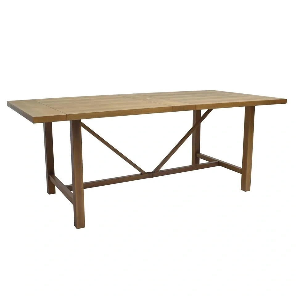 - Frame material: Weather resistant steel with a brushed pattern to mimic the appearance of wood