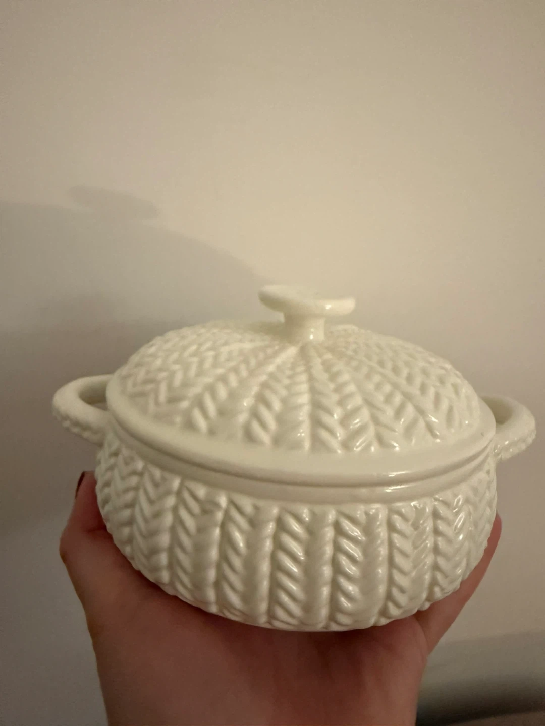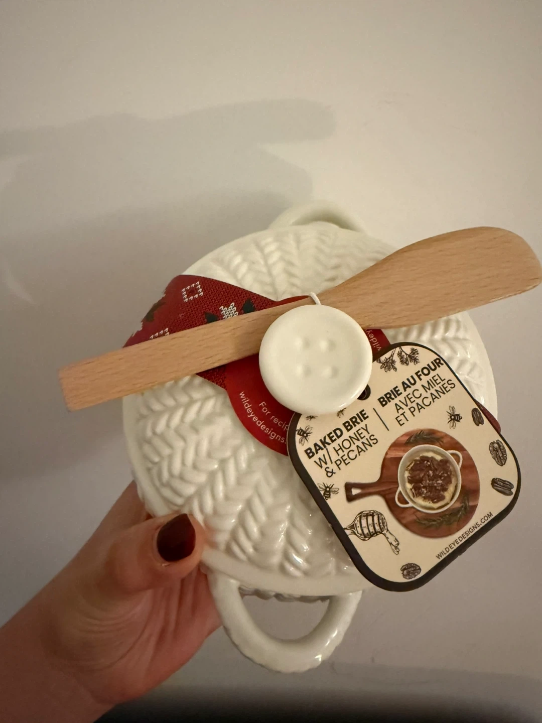 Ceramic brie cheese baker with a unique design. It’s brand new and comes with a wooden spreader. Perfect for serving warm brie! This baker is designed for use in the oven.