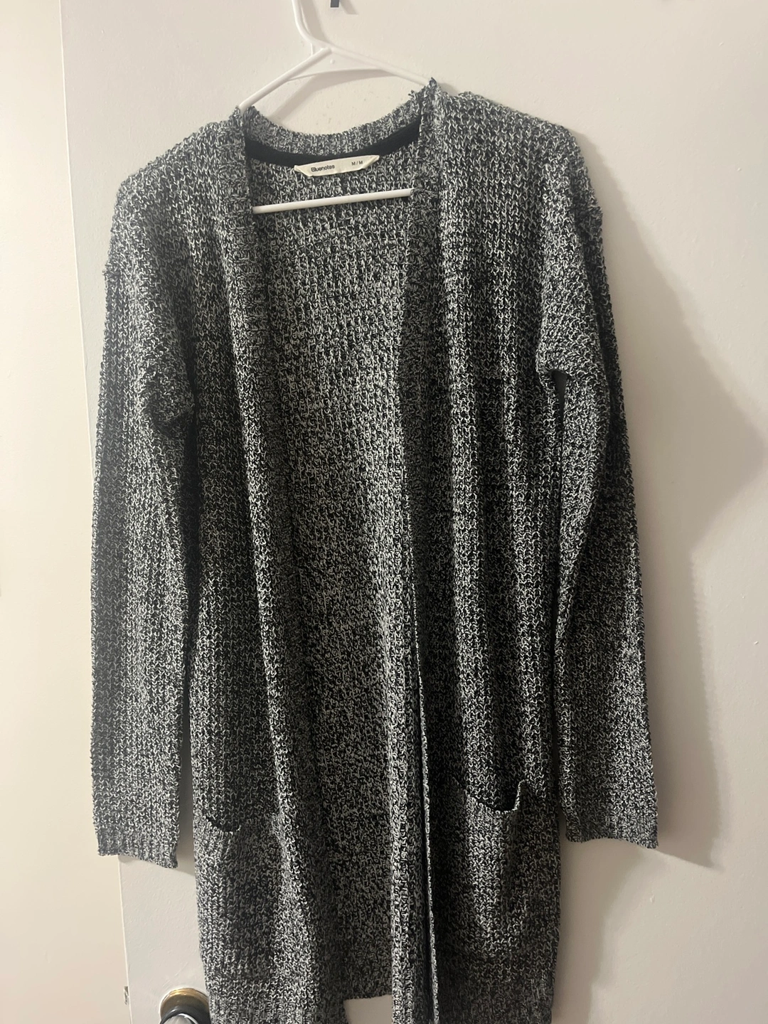 Black and white cardigan with pockets. Size medium. No closures. Long sleeves. Made of a soft, knitted material. Great condition