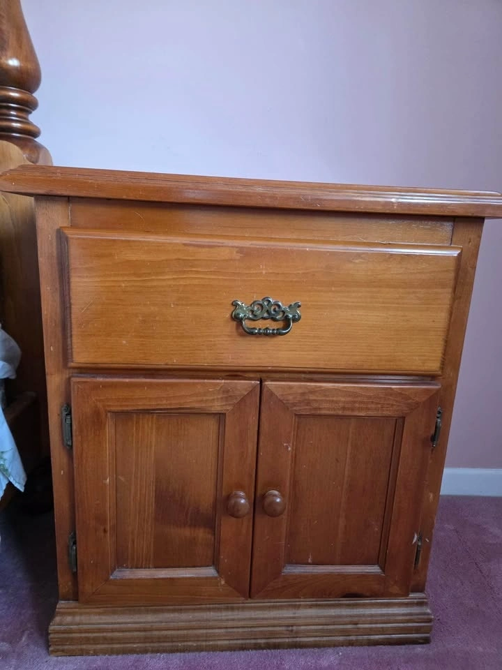 Solid wood bedroom set in gently used condition. Older, well-built furniture — sturdy and not particle board.