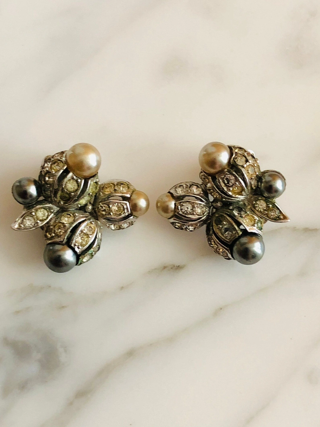 - Materials: silver tone, faux pearls, rhinestones