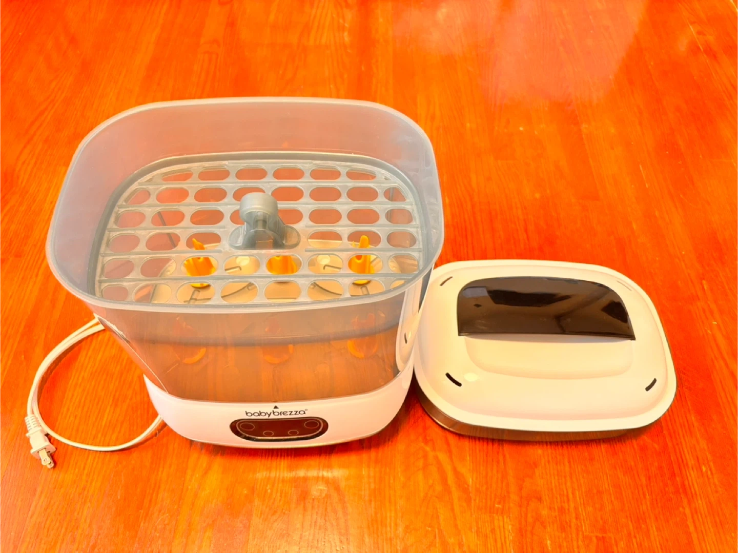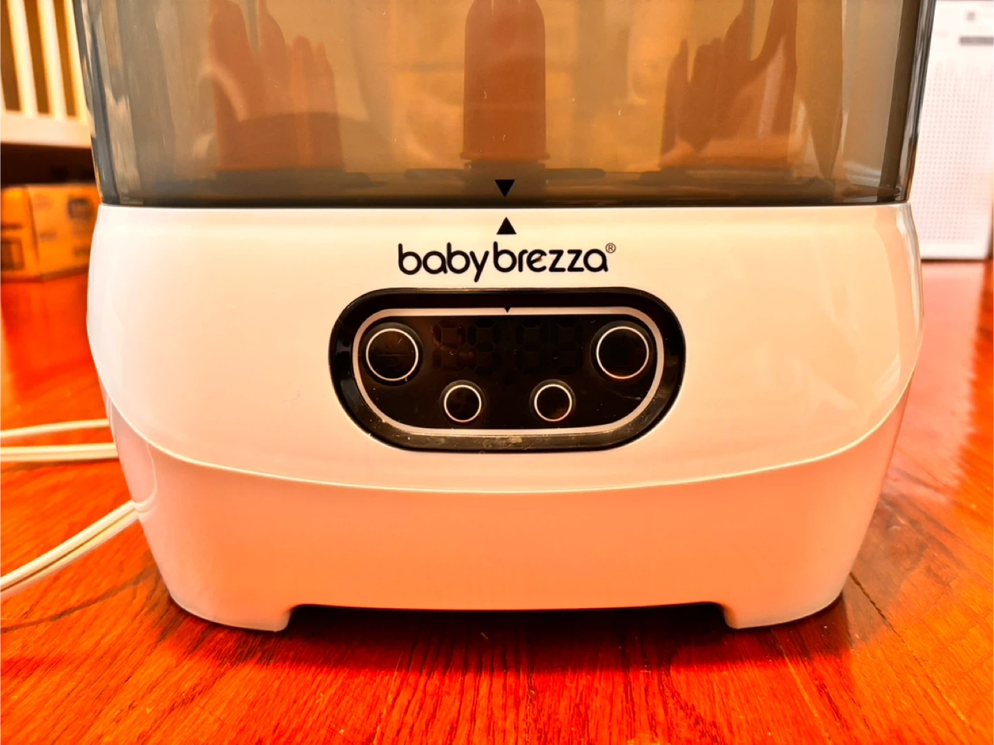 This is a Baby Brezza electric sterilizer and dryer for baby bottles and accessories. It has multiple functions for steaming and drying. It's great for keeping baby items clean and germ-free!