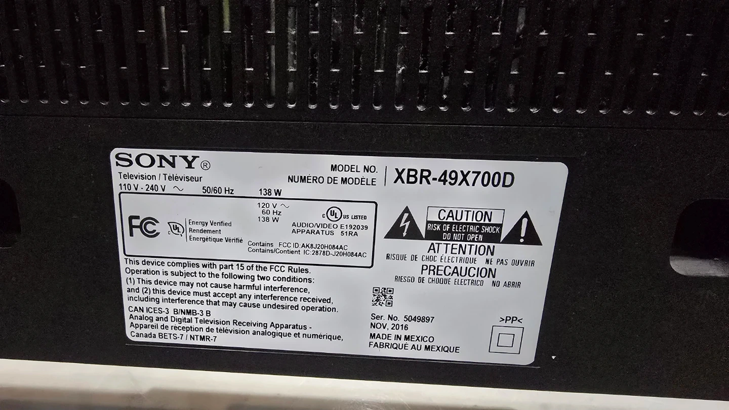 Selling a Sony 49-inch 4K Smart TV (Model: XBR-49X700D, 2016).