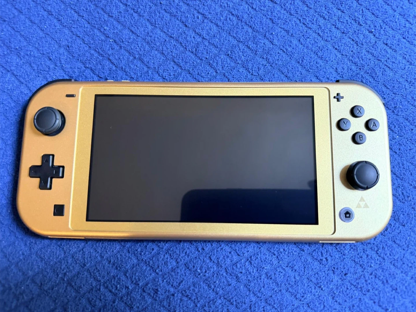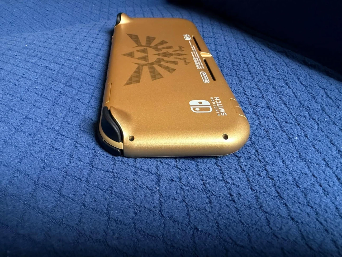 Gold Nintendo Switch Lite console with The Legend of Zelda Triforce design. Includes AC adapter, and a 256gb Samsung memory card. It's the Hyrule Edition! 3 metal gear games Included 1-2-3
