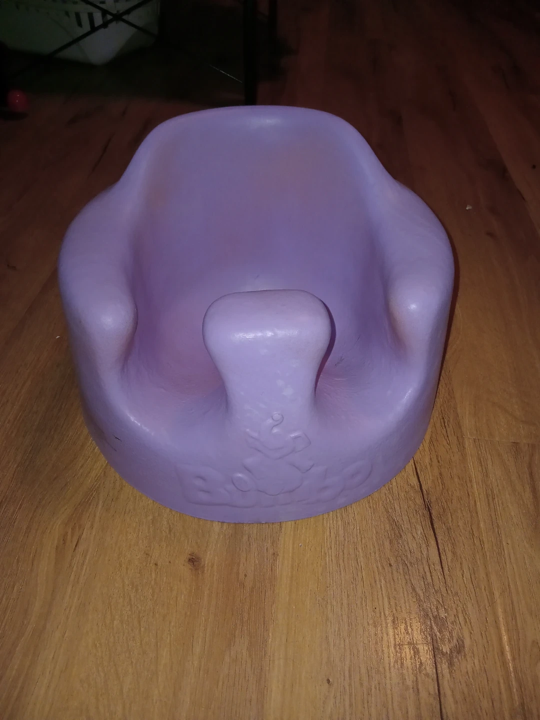 This is a Bumbo baby seat in a light purple colour. It's made of durable plastic and is designed to support young children. Ideal for babies who are learning to sit up independently.