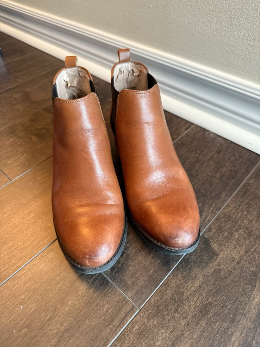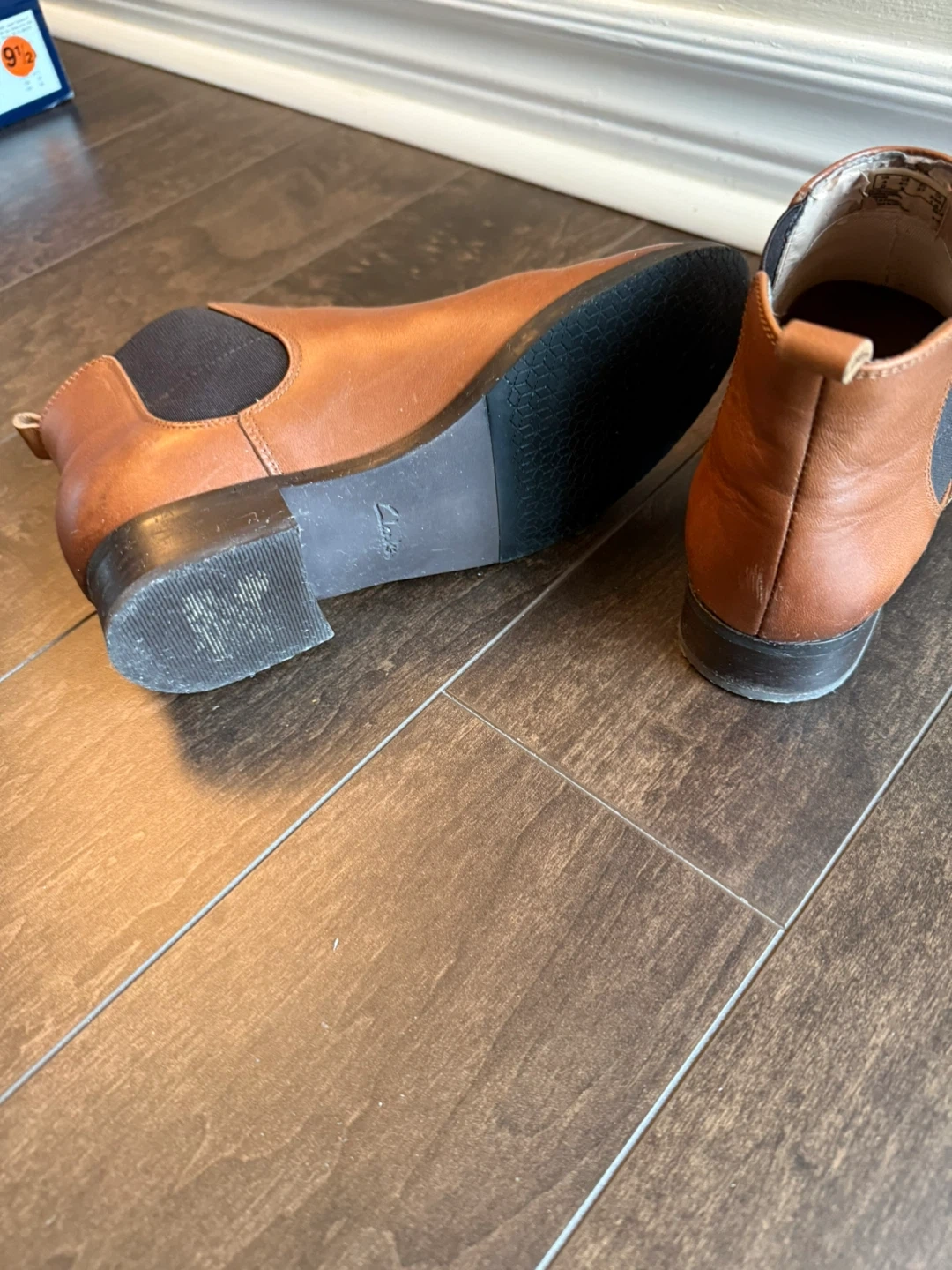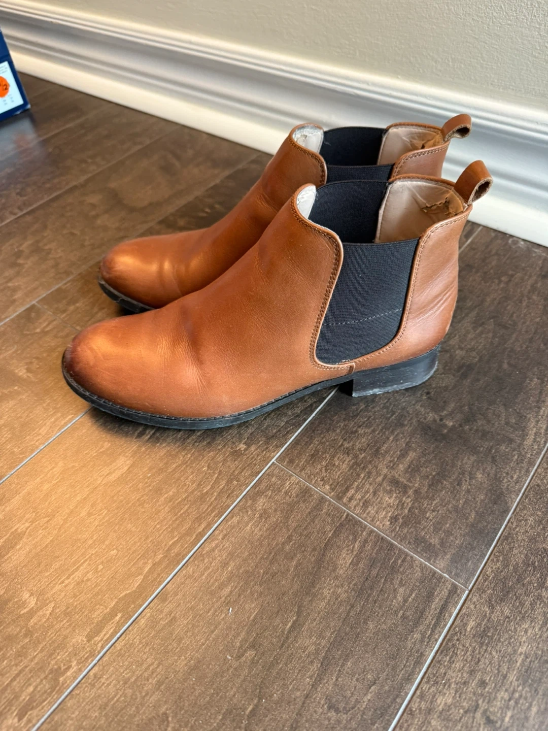 Selling a pair of Clark brown leather Chelsea boots. They show some signs of wear, but are still in good condition for everyday use. Great for fall and winter!