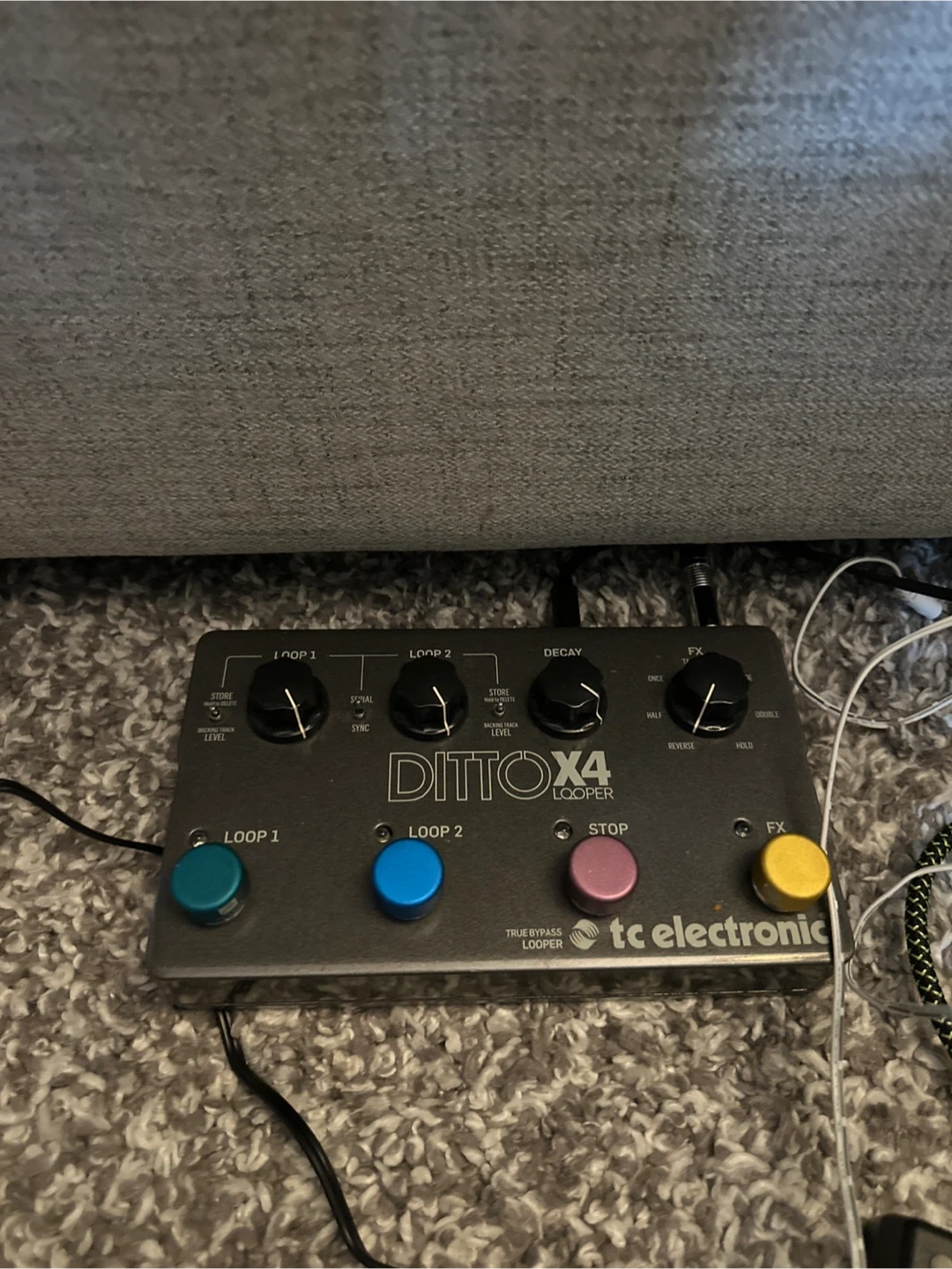 Selling a TC Electronic Ditto X4 Looper pedal. It's in great shape and ready to go! This true bypass looper offers features like decay and FX, with controls for loop levels and backing track level. Perfect for musicians looking to enhance their sound!