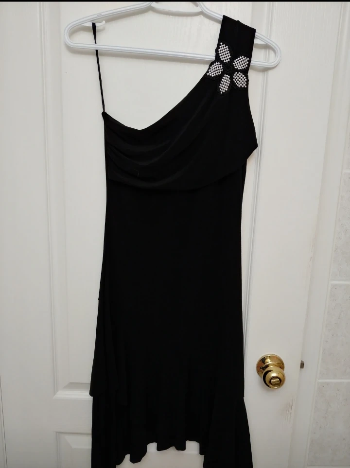 Brand new. This super cute dress is perfect to wear on special occasions or a night on the town! Even though it is an xs, the material is quite stretchable.
