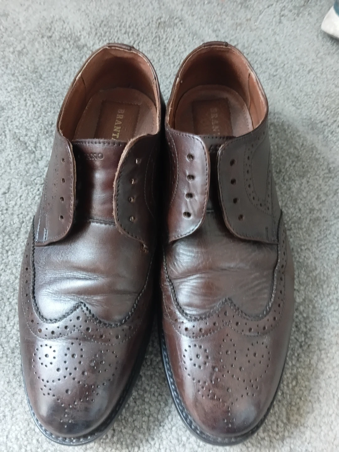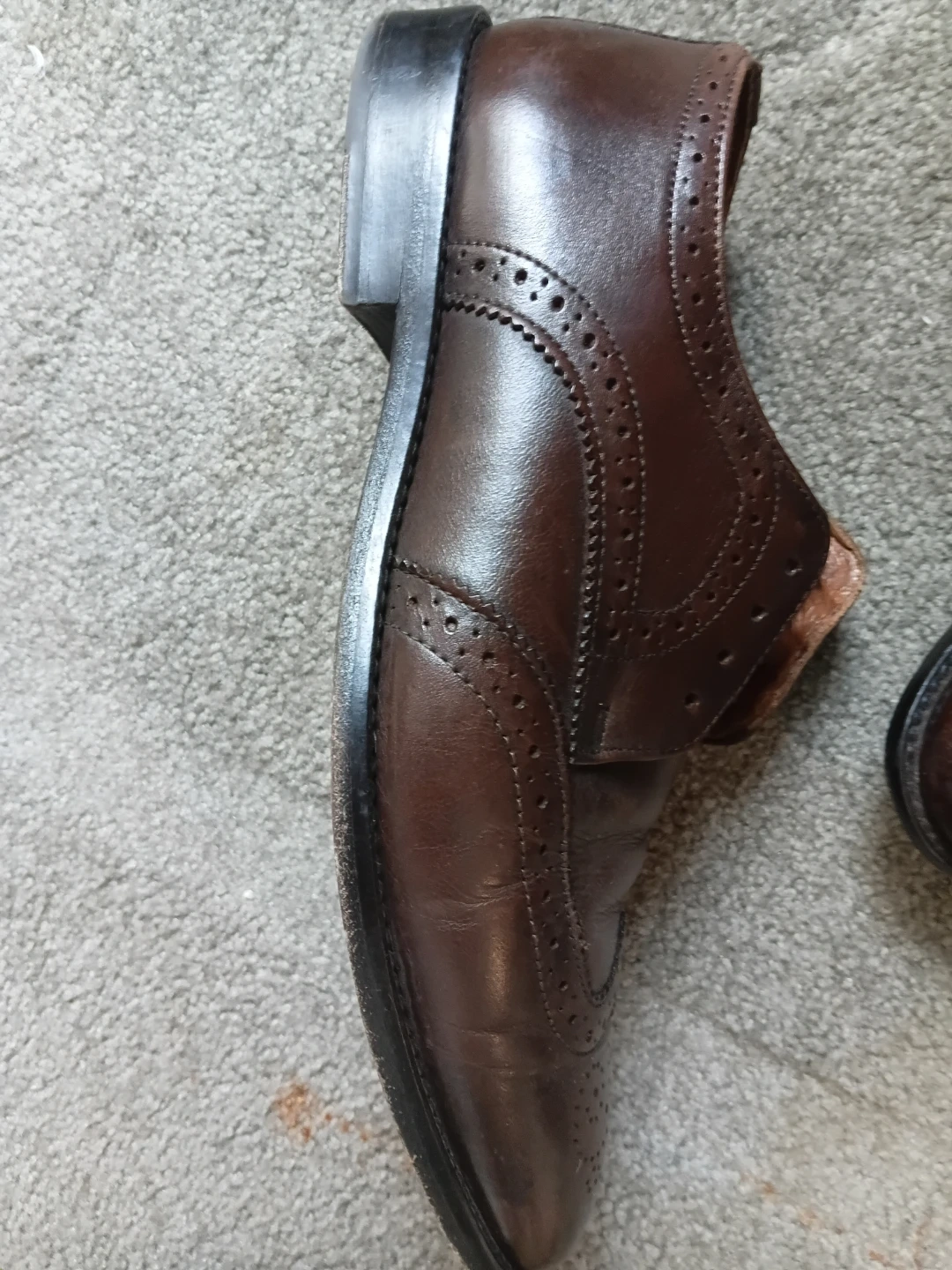 Dress shoes in a rich brown colour. These leather wingtips have classic brogue detailing. They're made from genuine leather for a polished look. Very high quality.