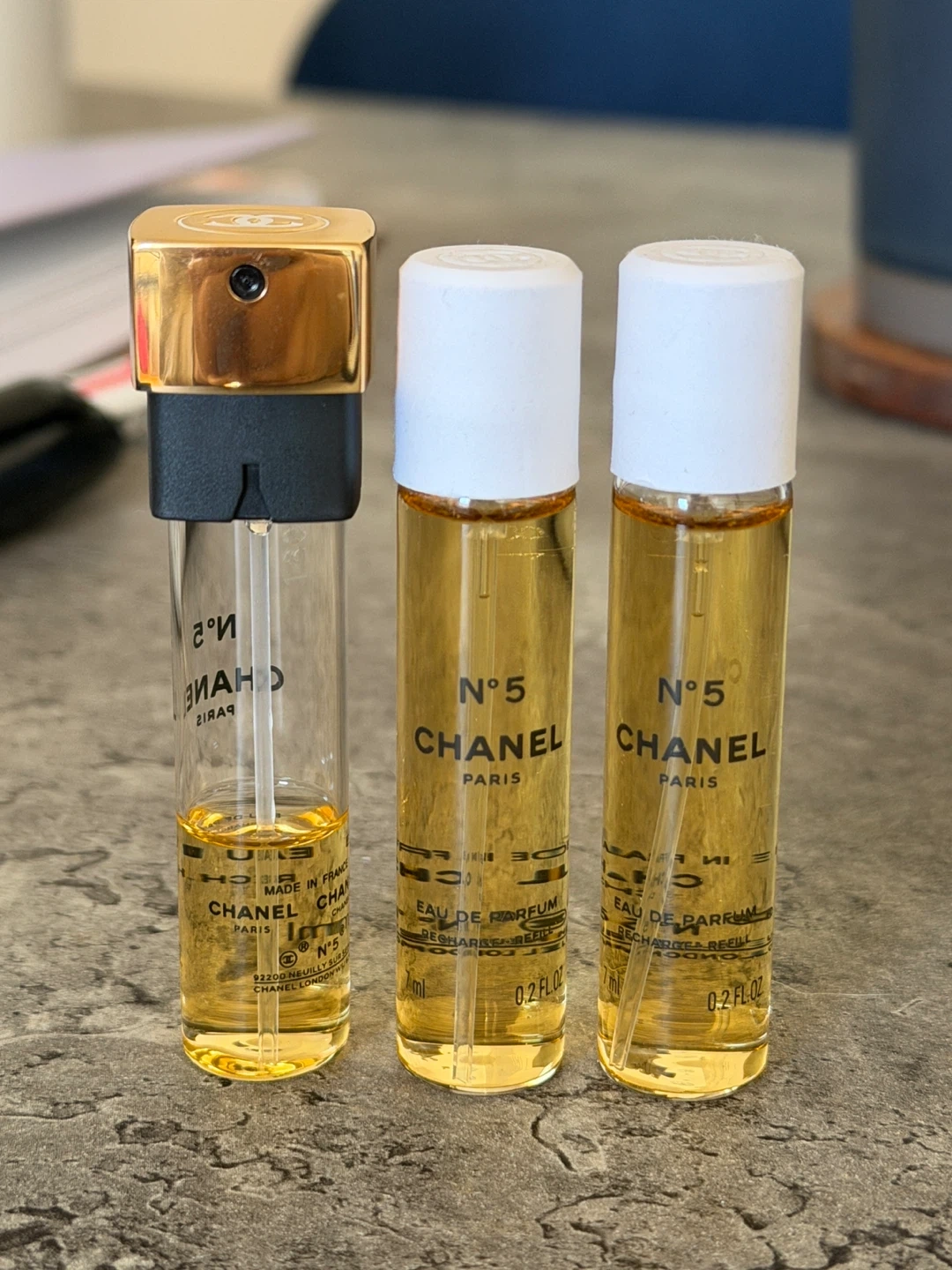 Authentic CHANEL No.5 limited edition refillable purse spray set.