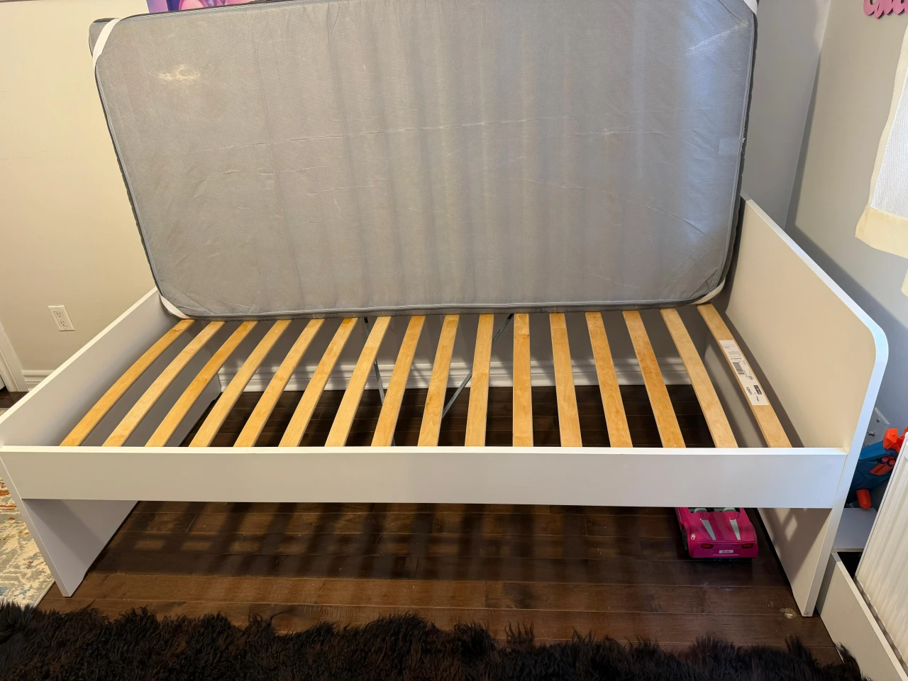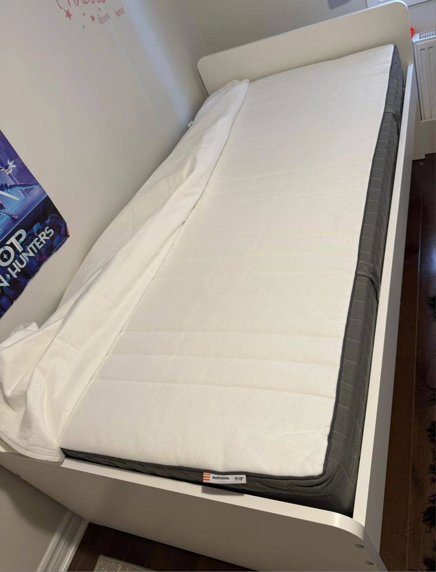Selling an IKEA VIHALS Twin Bed Frame and Morgedal mattress. It's in great condition, non smoking, no pets, no scratches. Like new, only used with matress cover