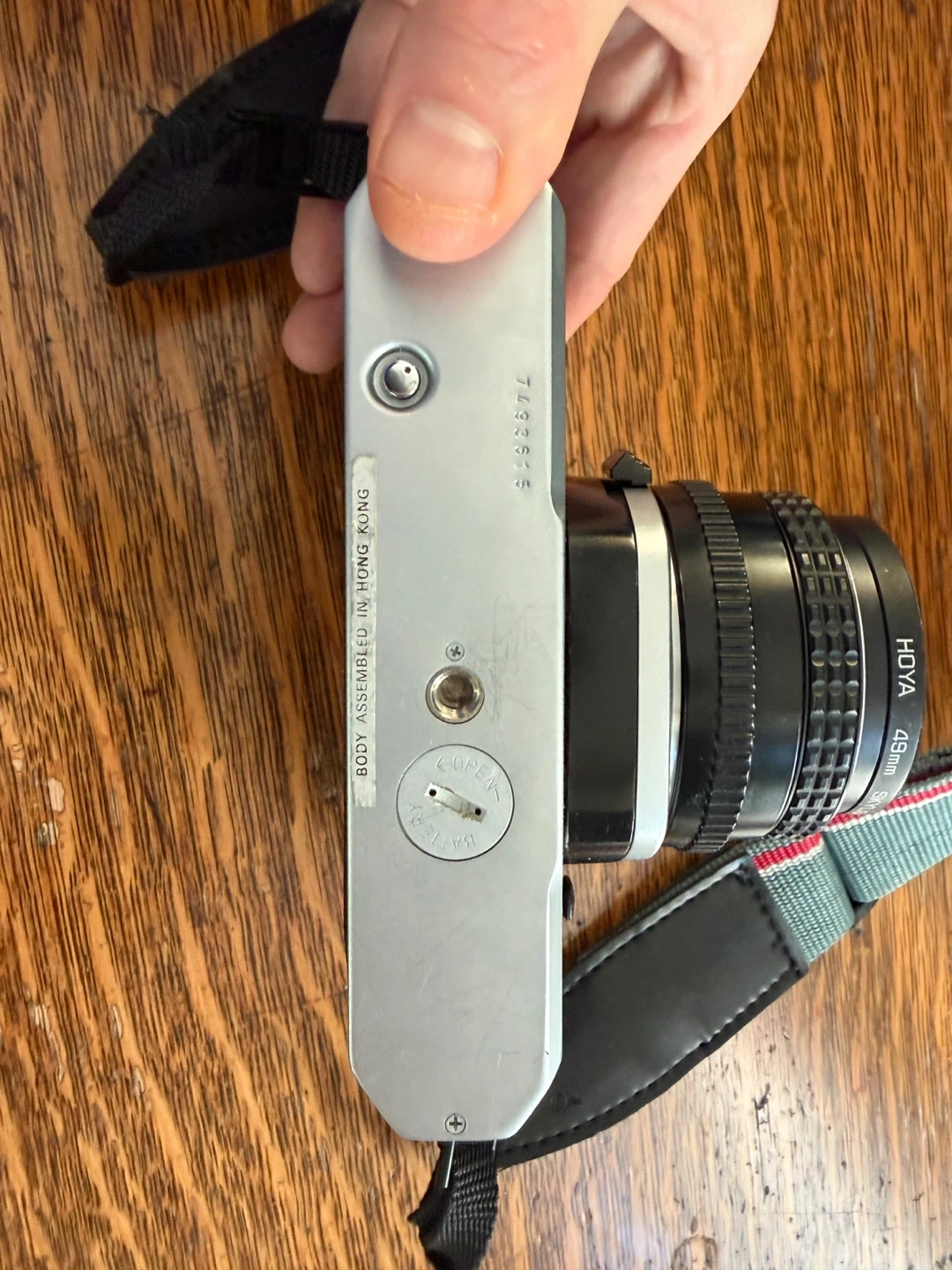 Selling a Pentax K1000 35mm film camera. It's a classic camera that's easy to use and great for beginners. The lens is a SMC Pentax-M 1:2 50mm. Missing lens cap. Light meter needs a new battery.