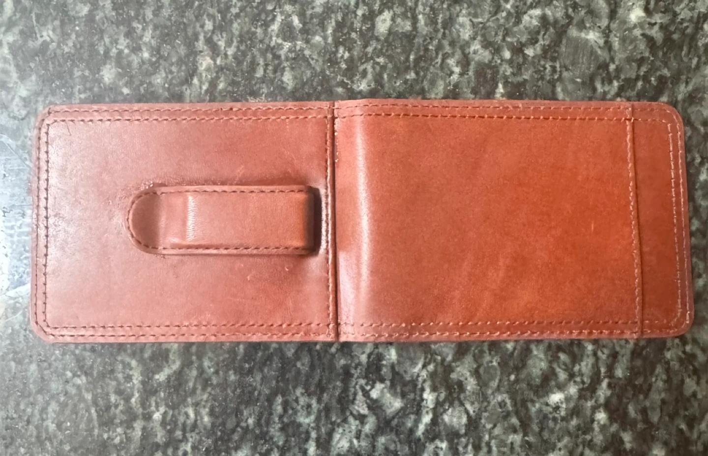 Selling a Bosca leather wallet in new condition. Never used. It's a stylish and functional accessory for everyday use. The wallet features 4 interior card slots and 2 compartments and an additional exterior slot to keep your essentials organized. Exterior clip. The leather has a rich, warm brown color that will develop a beautiful patina over time. Retails for over over $100